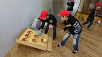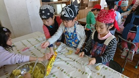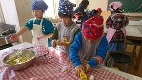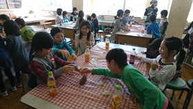 11月28日に、1年生のおいもパーティーを開きました。自分たちで計画や準備をし、飾りやプログラム、ゲーム、クイズなどを自分たちで分担しました。楽しみにしていただけに、朝からテンションの高いこと。みんな大張り切りでした。 |