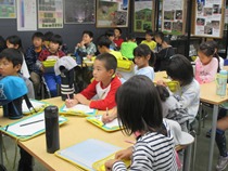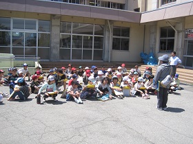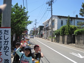 社会科の学習で学校のまわりを3つのコースに分けて探検しました。 学校のまわりの地図に、住宅の多いところ、お店の多いところ、目じるしになるものなどを書きこみ、自分たちの地図づくりに生かしました。 |