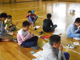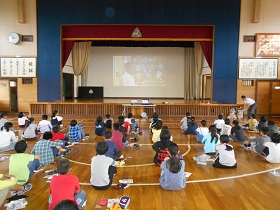 全国小学生歯みがき大会に参加しました。DVDを見ながら |