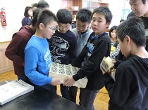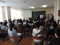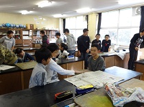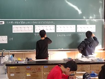 男鹿東中学校体験入学では、生徒会の先輩方から中学校での生活や学習について楽しく分かりやすく教えてもらいました。体験授業は国語、数学、理科、美術の4教科があり、みんな楽しく参加できました。中学校に行くのが楽しみになったかな。 |