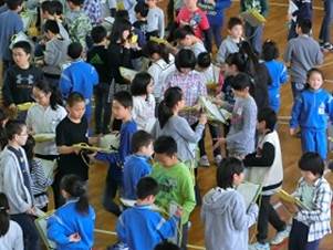 サインゲームで自己紹介しながら、全校がふれあいました。