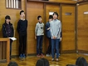 毎日、登下校の安全を見守ってくれている見守り隊の方々への感謝の会が開かれました。