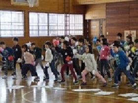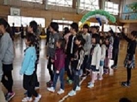 全校児童で、じゃんけん列車を行いました。