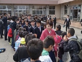 全校児童に見送られて、最後の別れを惜しみました。