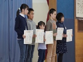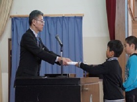 各学年の代表児童が校長先生から修了証書をいただきました。
