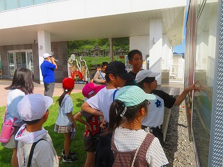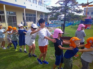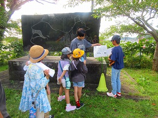 全校縦割りのなかよし班で。ウォークラリーを行いました。11箇所のポイントの中から各班7箇所を選択し、地図を見ながら歩きました。「くじら学校はマッコウクジラを売ったお金で建てた学校です。マッコウクジラのイラストは、どちらでしょう?」「市役所が建つ前は、ここには何が建っていたでしょうか?」「サナブリファクトリーというお店の名前には、どういう想いが込められているでしょうか。」「男鹿市で一番高い山の名前は?また、その山の高さは?」「オガーレという名前の由来は?」「湊谷さんでは船一に関係する商品が売っています。何?」「花のモリヤさんは毎年船一小に来ています。何の時?」「5月21日は船川神明社のお祭りです。何を願うお祭り?」などという問題を解きながら歩きました。選択肢のどれが答えなのか分からず、班のみんなに挙手をしてもらって決めている班もありました。答えが分からなくて、お店の人に聞いている班もありました。今年はこども園に行き、じゃんけんをした班もありました。協力してくださった地域の皆さん、どうもありがとうございました。