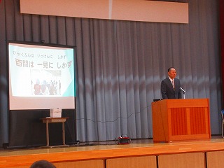 4日間の秋休みの後、後期が始まりました。後期は6年生が90日間、1~5年生が94日間となります。短いので、目標をきめて過ごしてほしいです。「百聞は一見にしかず」「百見は一考にしかず」「百考は一行にしかず」「百行は一果にしかず」ということから、ただ聞くだけではなく、実際に見て、考えて、試してほしいという校長先生のお話がありました。