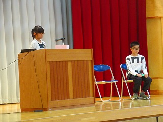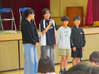 18日~20日の3日間、春日井市との交流会に参加する4人の6年生から、それぞれ何をがんばってくるのか発表がありました。