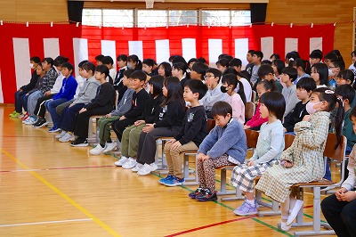 23名の元気な1年生を迎え、全校児童が揃いました。今年度は、全校128名でスタートです。入学式で名前を呼ばれると大きな声で返事をしていました。2年生以上のみんなが大きな声で校歌を歌い、新入生の入学を祝福しました。