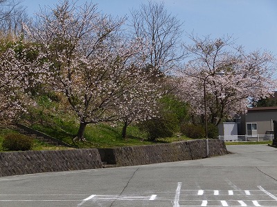 校地内の桜が満開です。でも、例年より花の数が少ないように感じます。