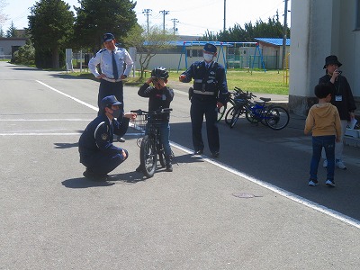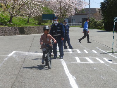 1,2年生は、道路の横断の仕方を、3年生は自転車の乗り方を、4~6年生は交通安全についていろいろ教えていただきました。