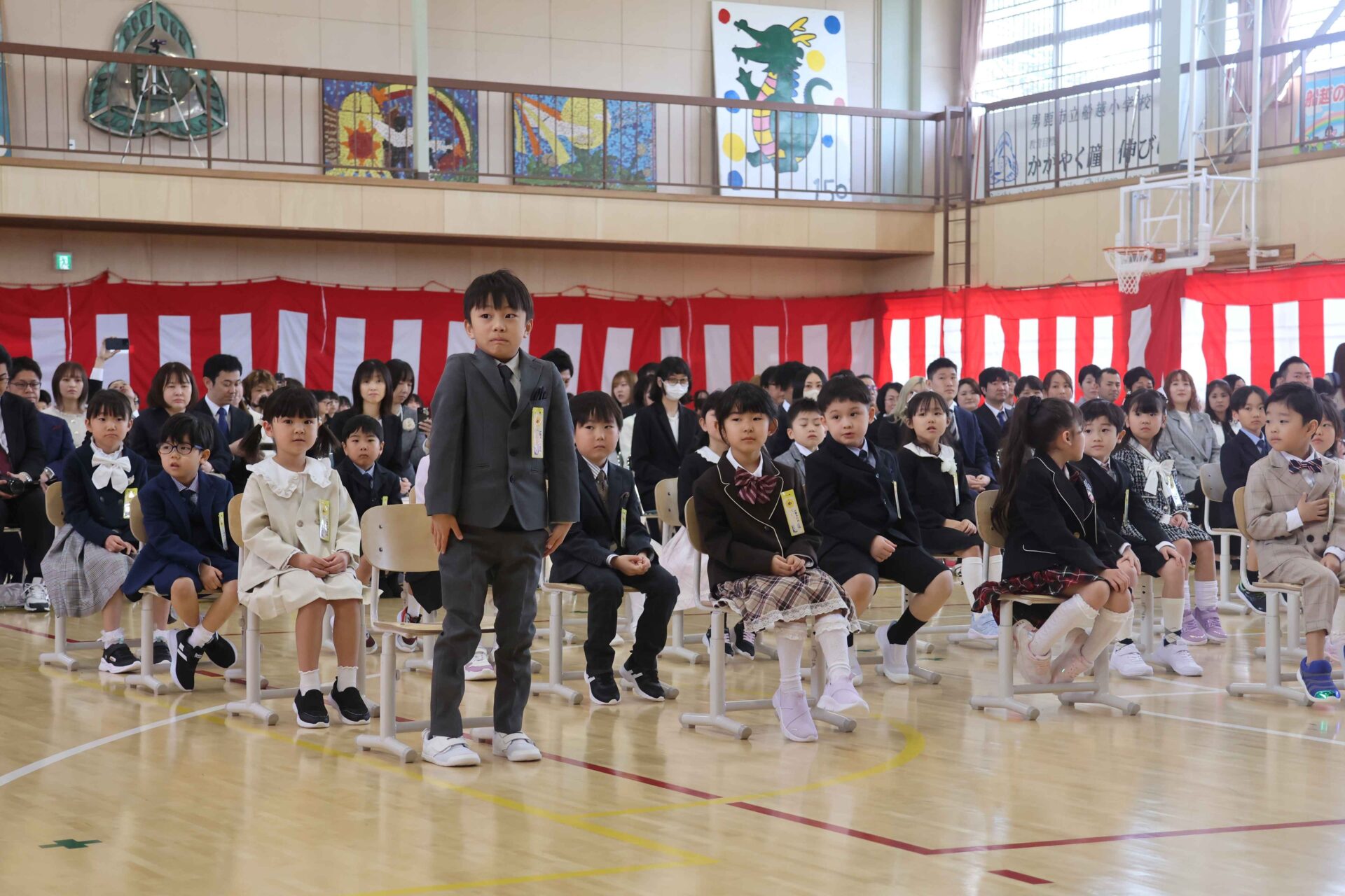 4月8日の入学式では、38名の1年生を迎え、総勢295名の子どもたちで、船越小の令和8年度がスタートしました。入学式では、少し緊張している様子の1年生でしたが、名前を呼ばれると「はい」と元気に返事ができました。これから楽しい学校生活が待っていますよ。