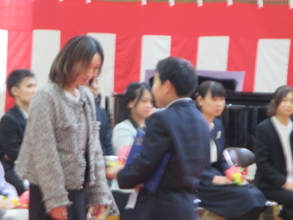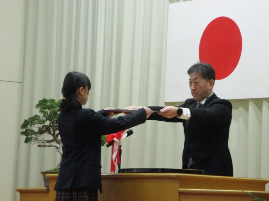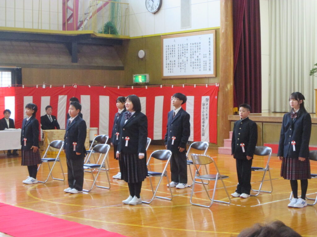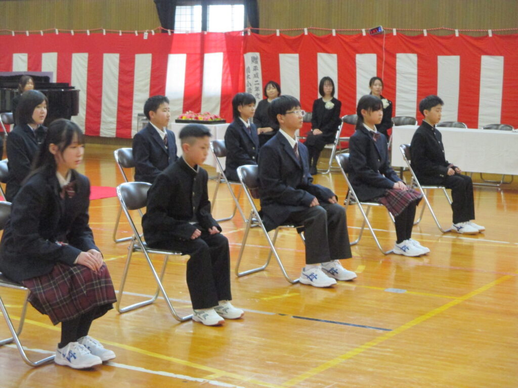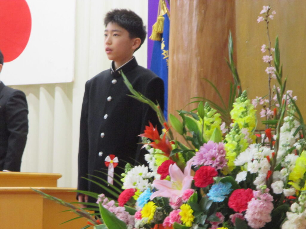 卒業証書授与では,将来の夢や希望を堂々と話し、落ち着いて証書を受け取りました。在校生も卒業生への感謝の気持ちを、呼びかけと合唱で伝えることができました。卒業生の皆さん、保護者の皆様、ご卒業おめでとうございます。
