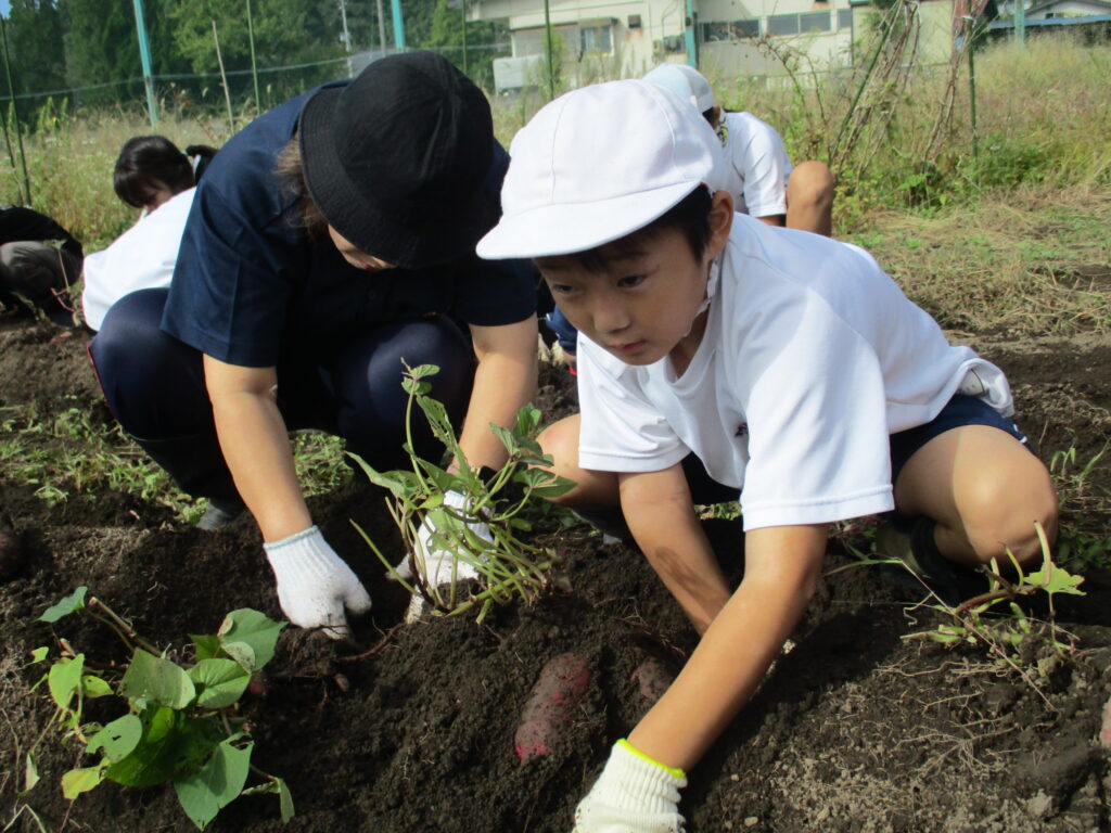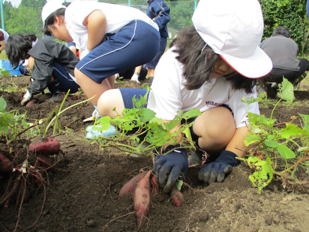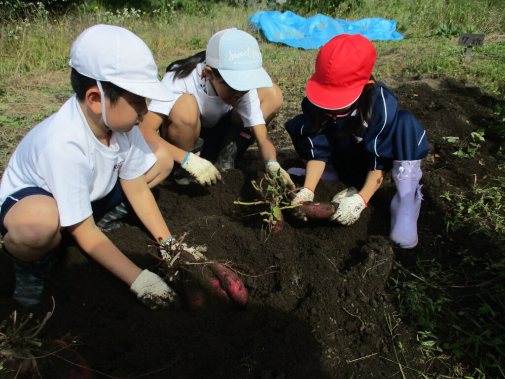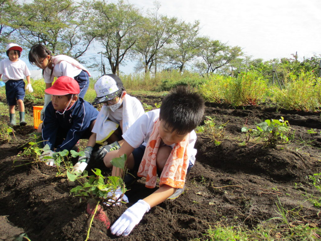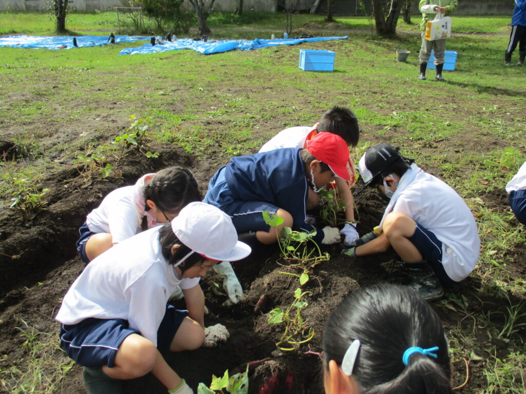 10月7日、サツマイモの収穫をしました。今年度は、雨のためになかなか実施することができなかったため、コンディションのよい日に合わせて行いました。そのため、6年生が校外学習のため参加できませんでしたが、4、5年生がリーダーとなって行いました。縦割りグループごとに収穫しました。今年もたくさん収穫できました。畑の先生には、畑づくりや畑の世話で大変お世話になりました。ありがとうございました。