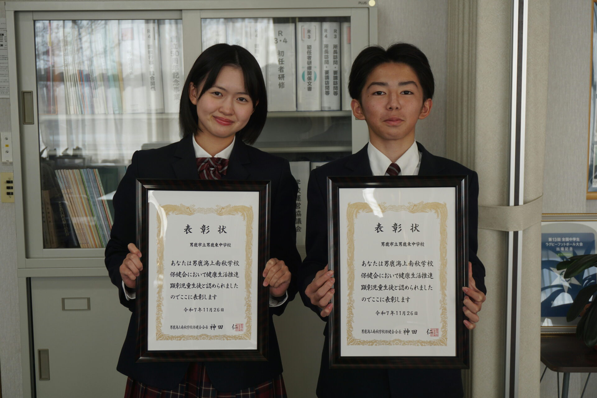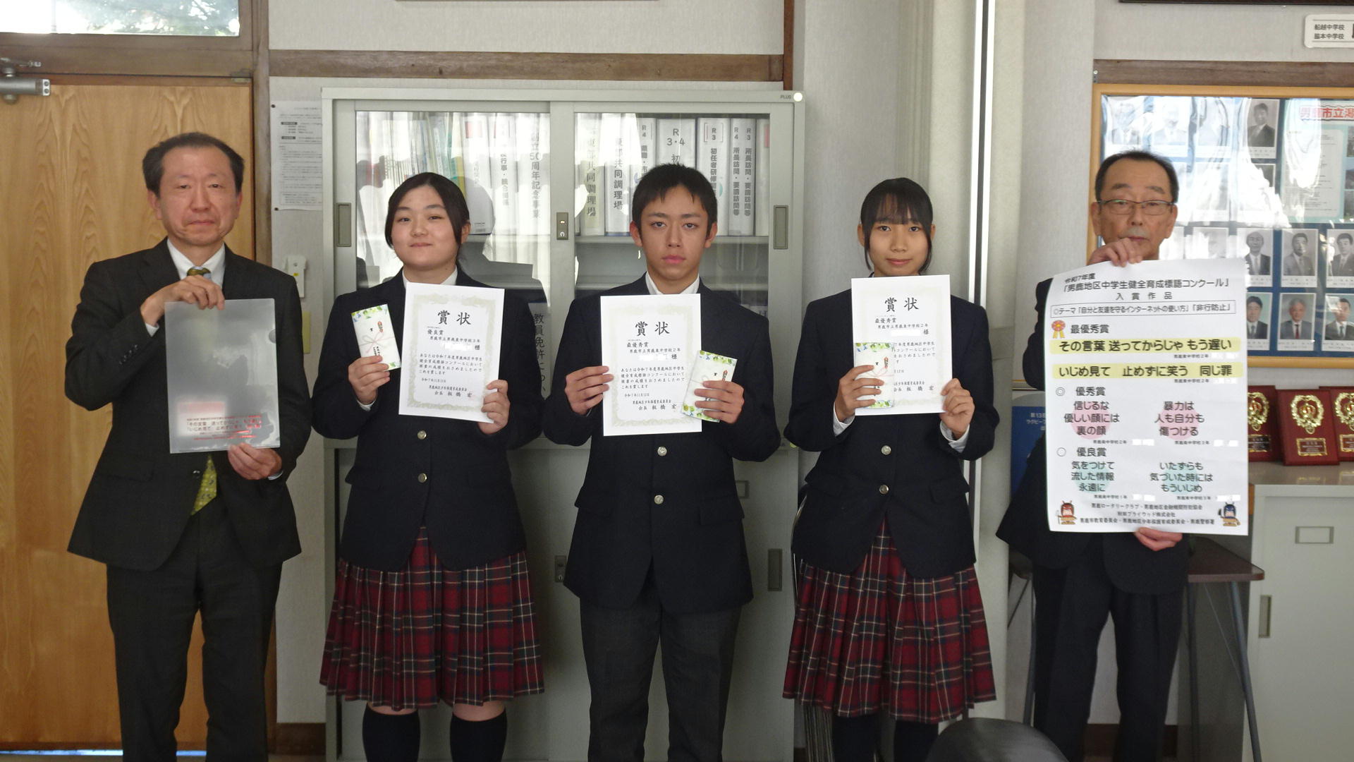 男鹿地区中学生健全育成標語コンクールの表彰を行いました