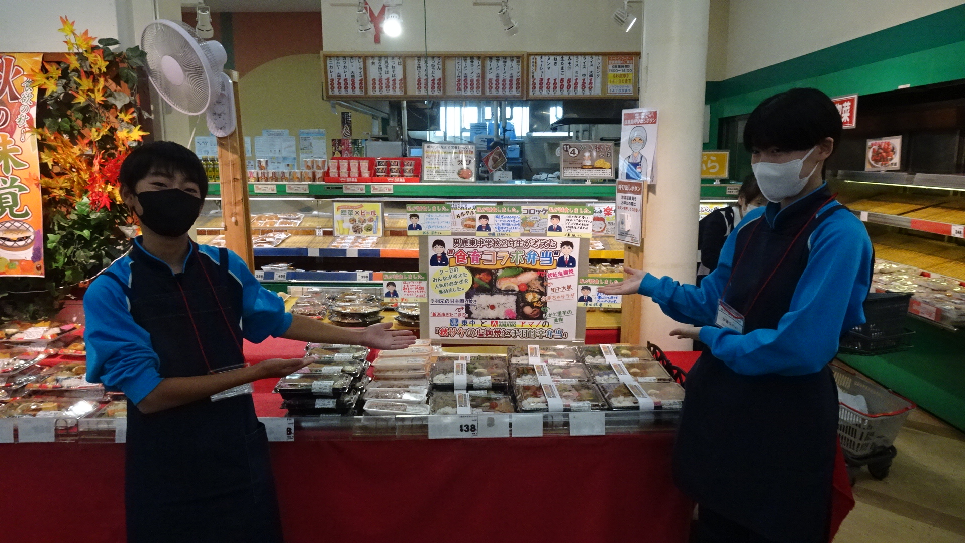アマノとのコラボ弁当を、職場体験中の2年生が店頭で販売しました