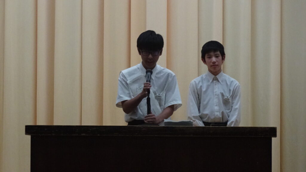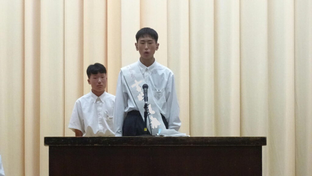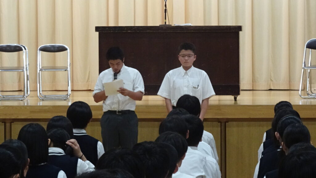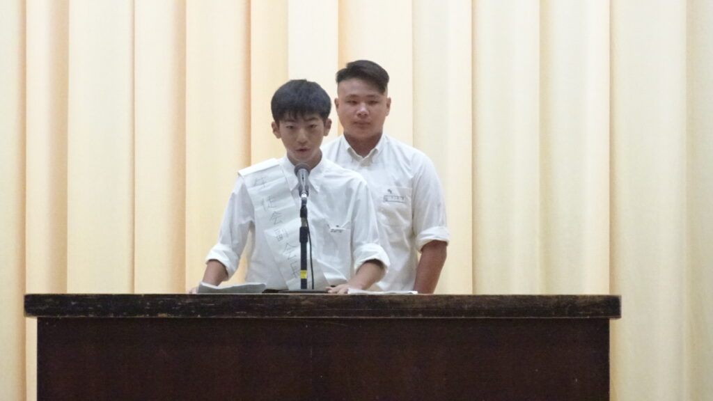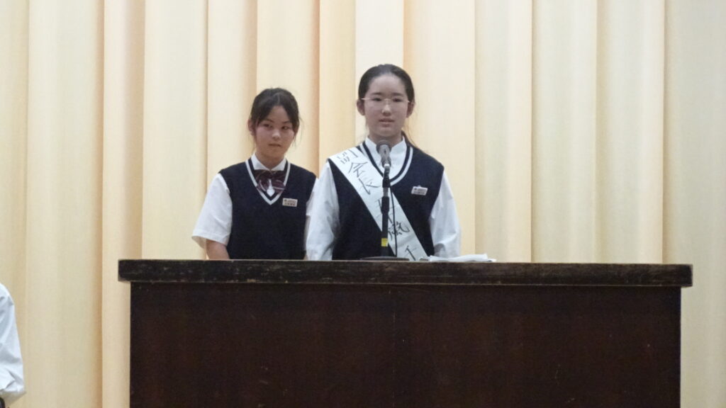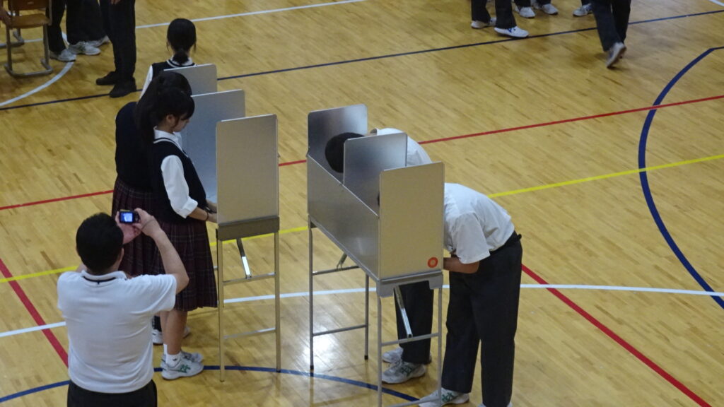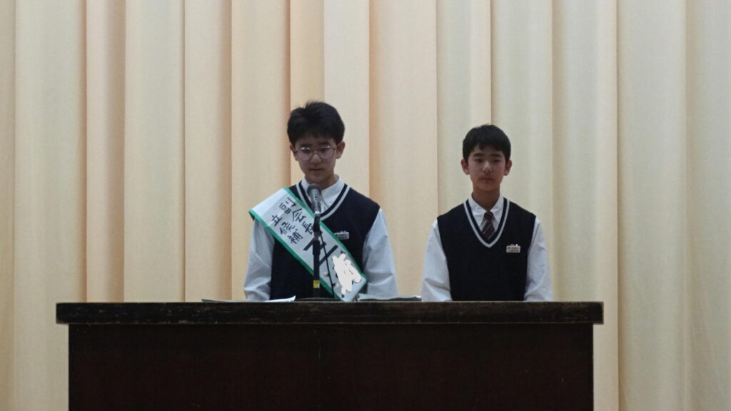 10月6日(月)、後期生徒会役員を決める選挙がありました。選挙管理委員長あいさつ、校長あいさつ、立ち会い演説会(責任者による応援演説+立候補者による演説)、投票と、整然と進められました。投票箱も用意され、実社会とほぼ同じ仕組みで役員が選出されました。1・2年生が学校の中心となり、新しい風を吹かせてくれることを期待しています。
