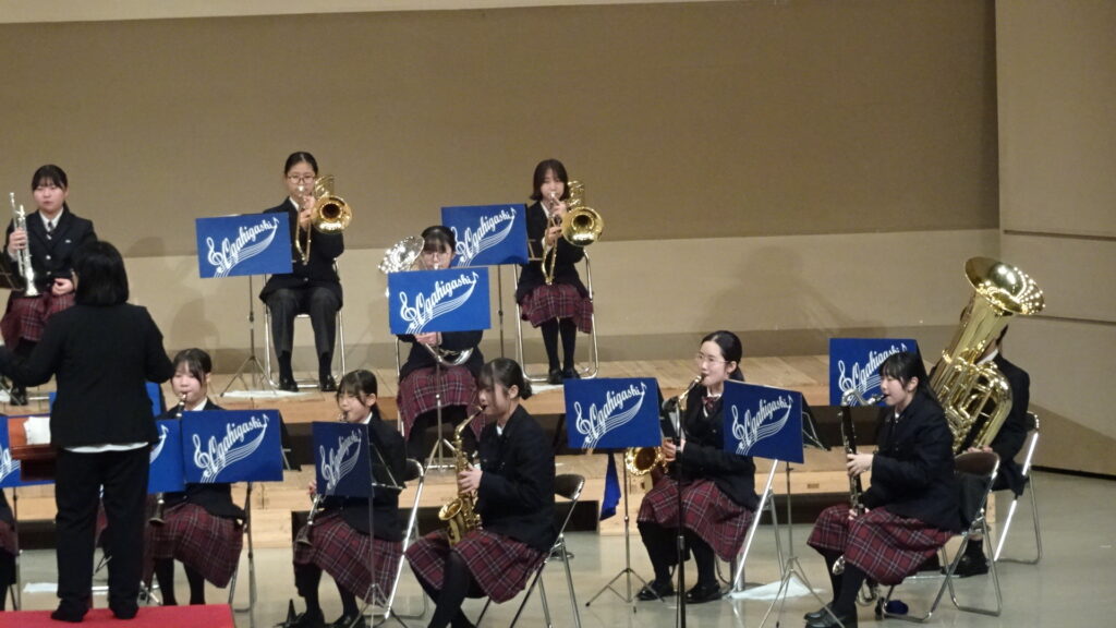 1月5日(月)、令和8年男鹿市消防出初め式のアトラクションで、吹奏楽部がアンコールを含め7曲の演奏を披露しました。演奏は聴く人に感動を与え、大絶賛されました。吹奏楽部の皆さん、年末年始休みがあったにもかかわらず、素敵な演奏を聴かせてくれてありがとうございました。