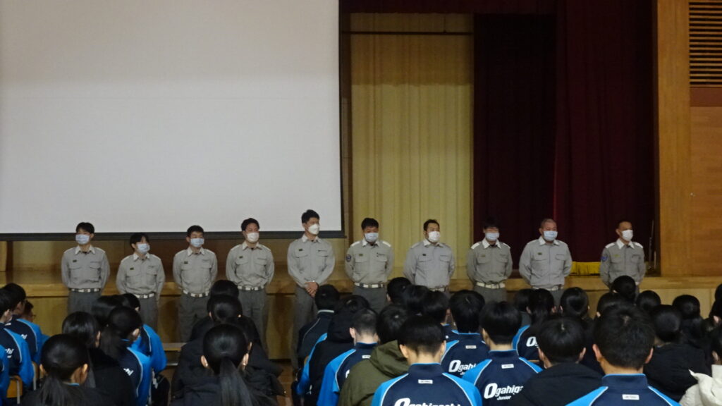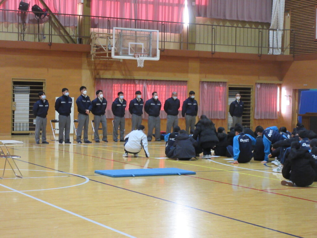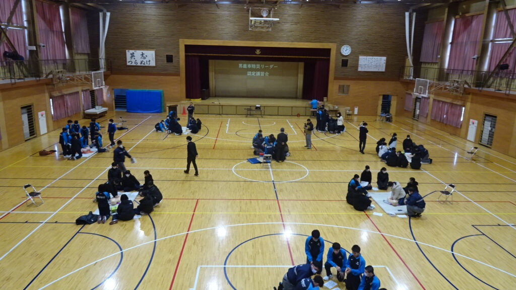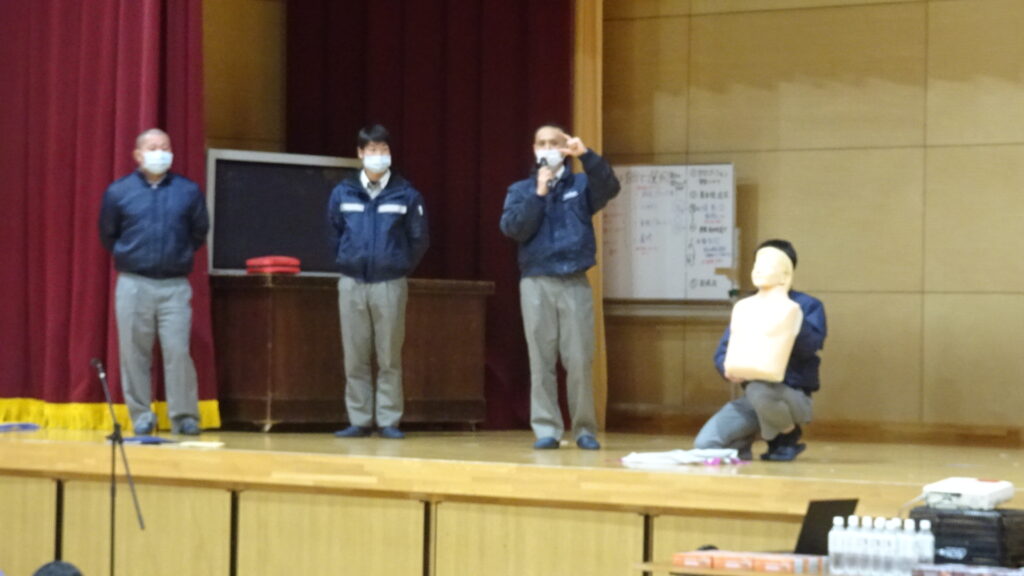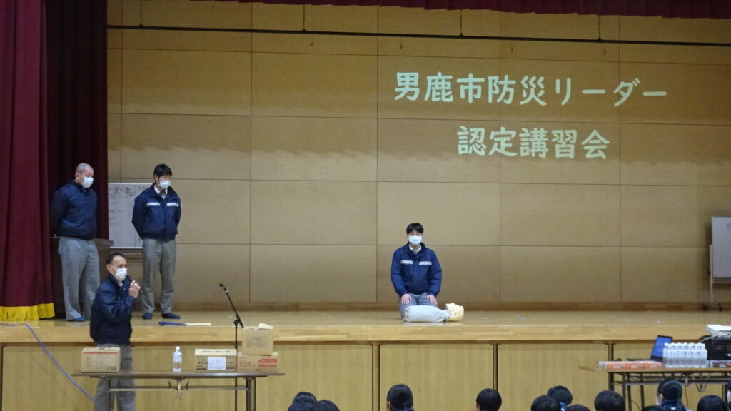 1月16日(金)、「男鹿市防災リーダー認定講習会」の1回目が開催され、2年生が男鹿市初の中学生防災リーダーを目指して動き出しました。10名の消防職員が来校し、4校時に救命救急の講話を聴いたあと、5校時には胸骨圧迫による心肺蘇生法について、6校時にはAEDを使った心肺蘇生法について体験を通して学びました。実技体験については、体育館に10ブースを設置してくださったので、約10名程度のグループに分かれてじっくり体験ができました。3月に開催される2回目の講習会を終えると認定証が交付されるようです。能登半島地震があり、半島で災害があった場合の困難さが広く理解されるようになりました。非常時に東中生が防災リーダーとして力を発揮できれば、市民の誰もが助かります。男鹿の未来を担う東中生に期待が膨らみます。