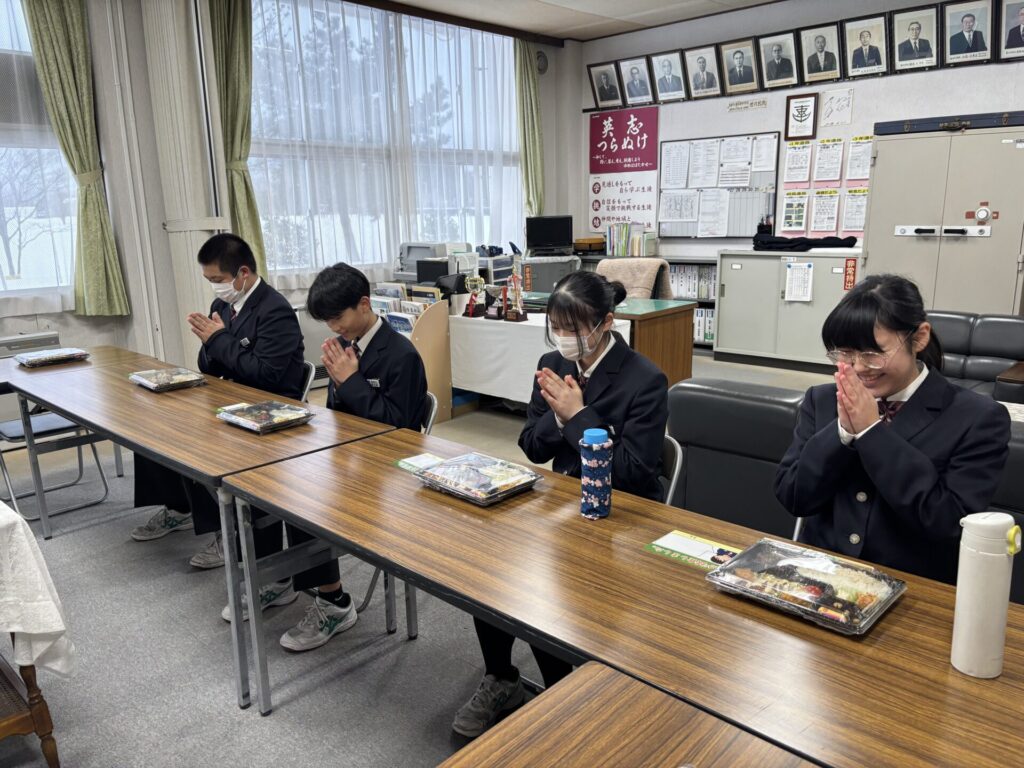 2月9日(月)、2年C組が考案したアマノとのコラボ弁当の試食を行いました。C組考案の弁当は11月に店頭で販売されたのですが、その際試食できない状況での販売となってしまったので、2月に再度コラボ弁当を販売することとなりました。店頭販売の期間は、2月16日から22日です。よろしければ味わってみてください。