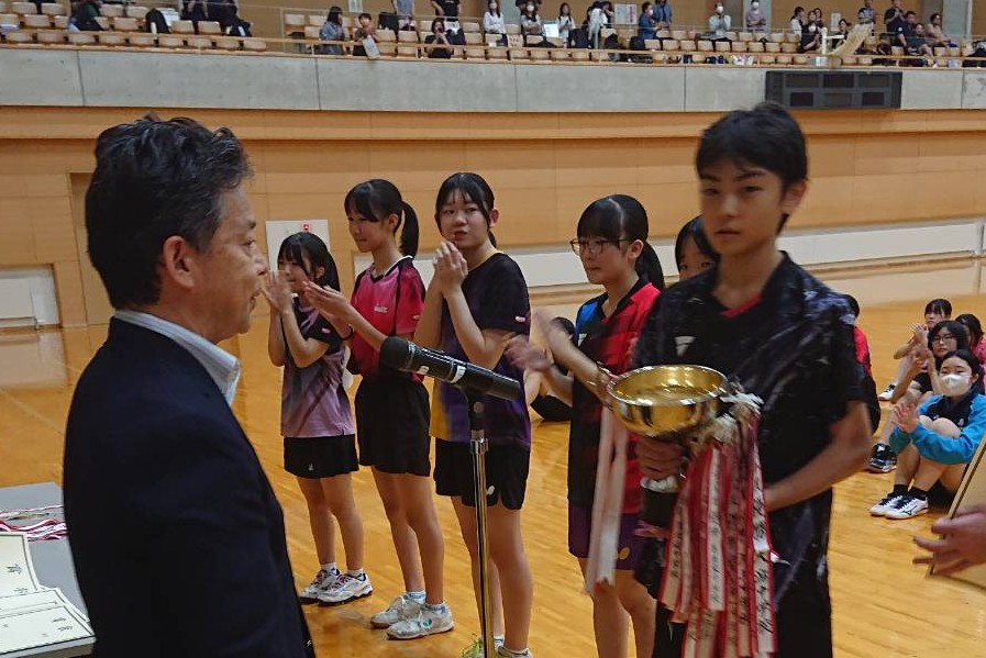 女子団体戦は、初日の予選リーグを全勝で一位通過し、準決勝で井川義務教育学校に、惜しくも敗退し、3位となりました。順位決定戦では天王中に競りがち、全県大会の切符を手にしました。女子個人は、鈴木選手がベスト8となり、全県大会に出場します。今後の更なる活躍を期待しています。