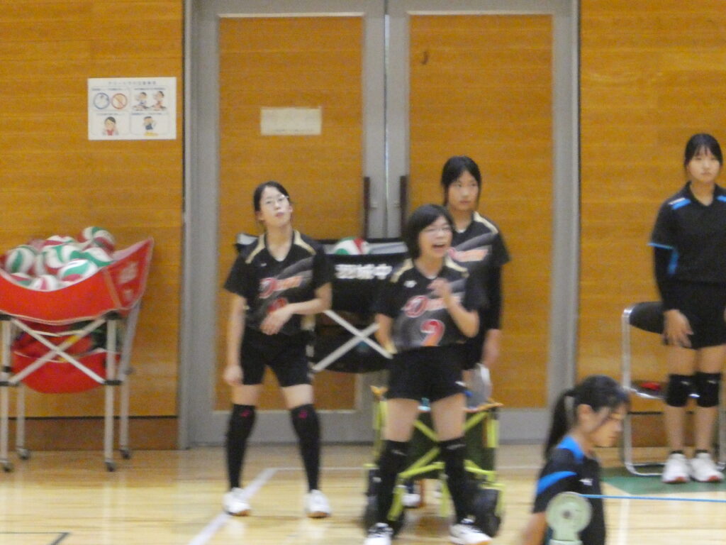 続いてバレーボールです。この大会は、大潟中学校、井川中学校と3校合同チームで出場しました。5校総当たりで行われ、3勝1敗という結果になり、準優勝を果たしました。合同練習のため、送迎にご協力いただき、感謝の思いです。駆けつけた3年生や保護者の皆さんの熱い応援にも感動しました。全県大会も頑張ってほしいです。