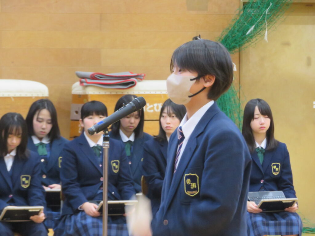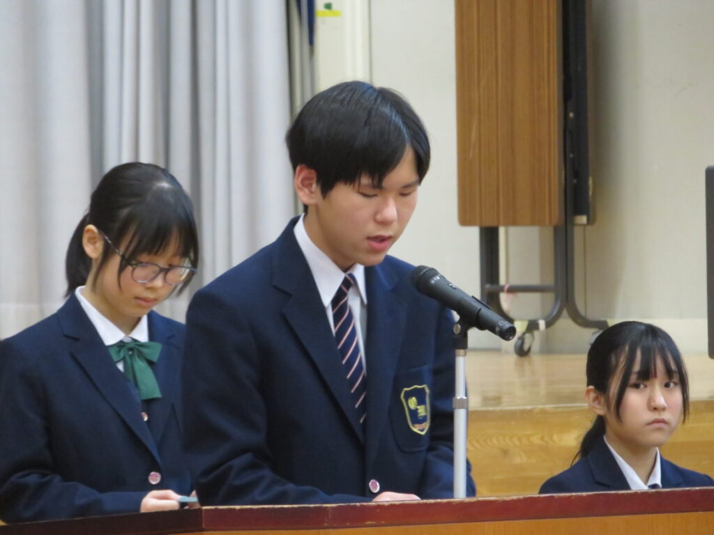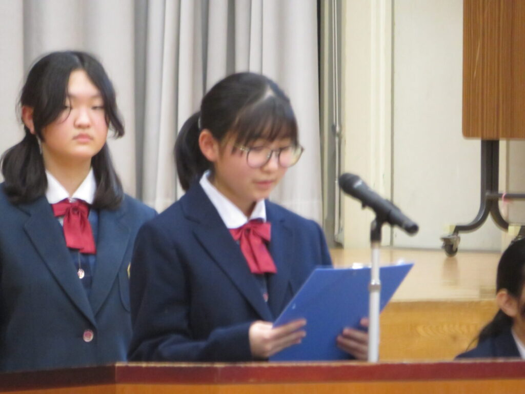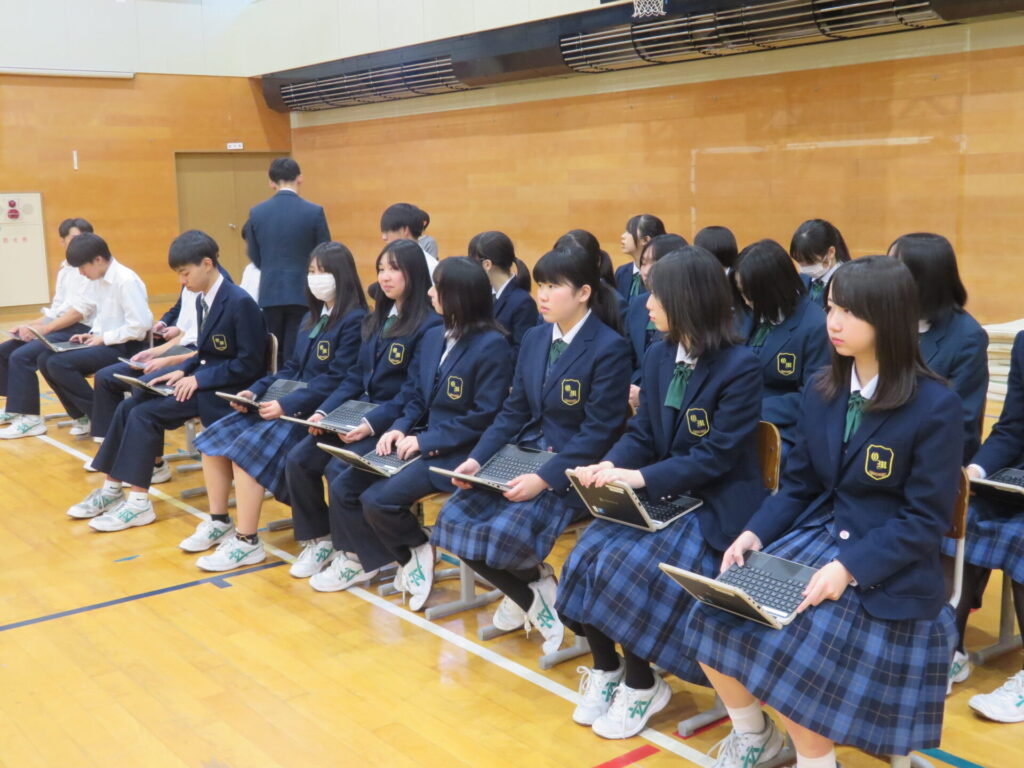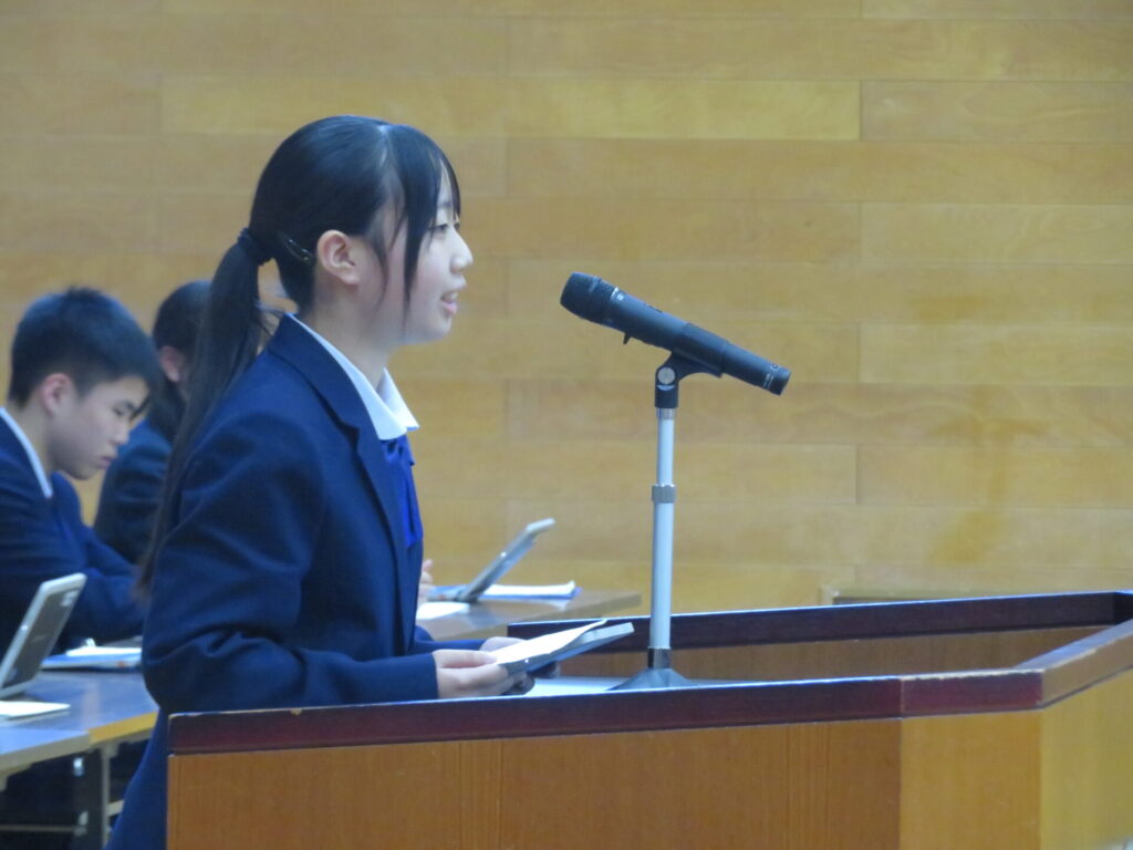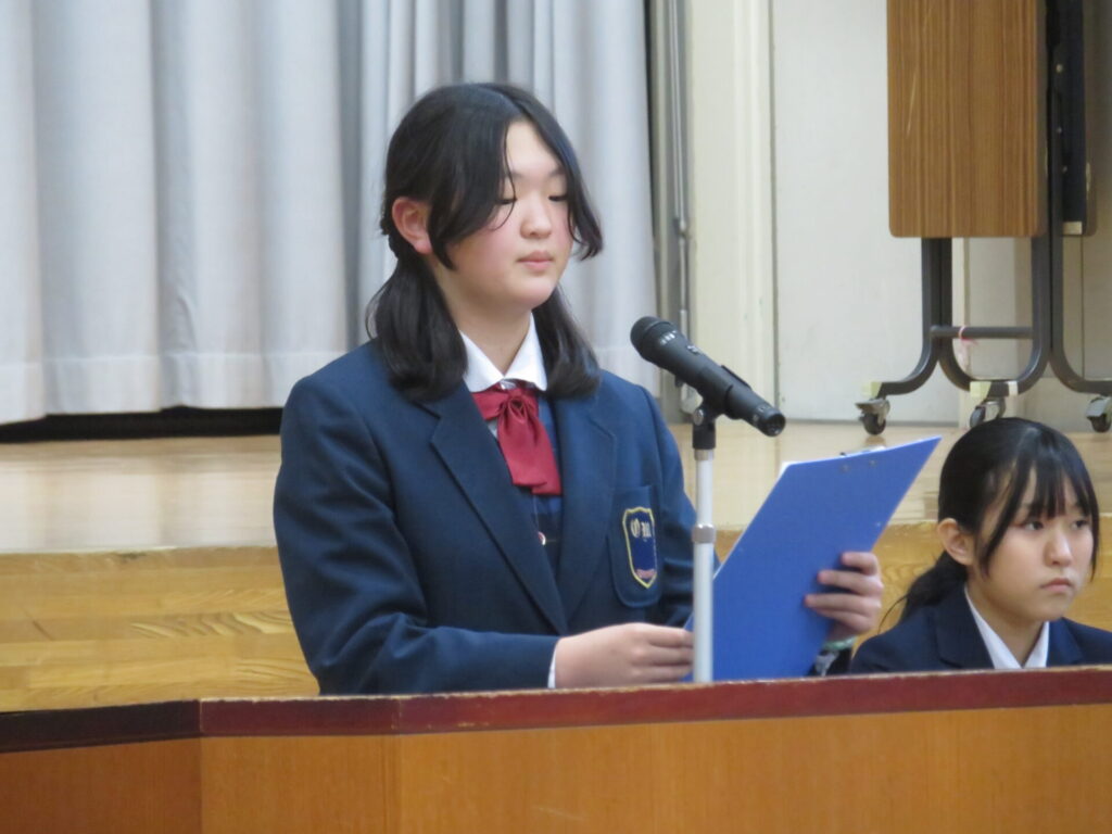 10月30日に、後期生徒総会が開催されました。生徒会執行部や各委員会の代表は、3年生から1、2年生にバトンが渡され、後期の生徒会活動方針や各委員会の活動方針について意見交換がなされました。