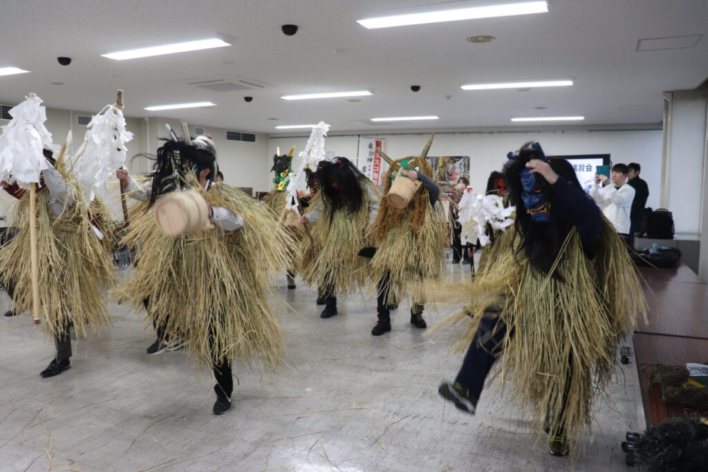 2月7日の男鹿駅前グルメイベント「冬はホットに!アツアツ鍋集会」の開催に合わせて、男鹿市商工会青年部より、本校1年生のナマハゲ講座でイベントを盛り上げてほしいとの依頼をいただきました。