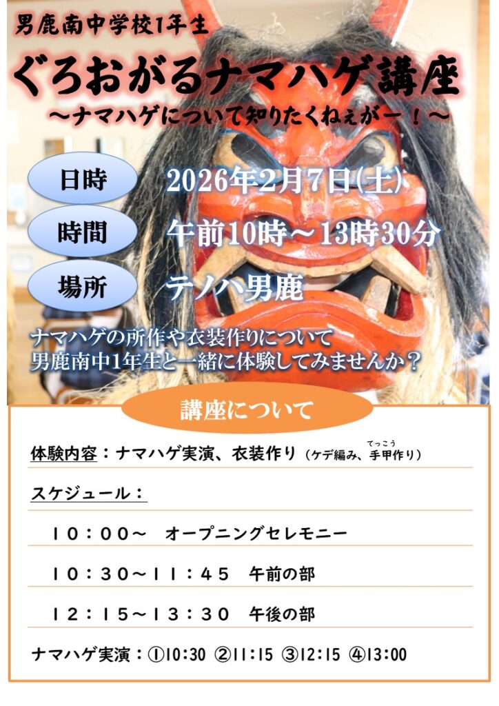2年生の鍋集会コラボと一緒に、1年生のぐろおがるナマハゲ講座もお楽しみください。