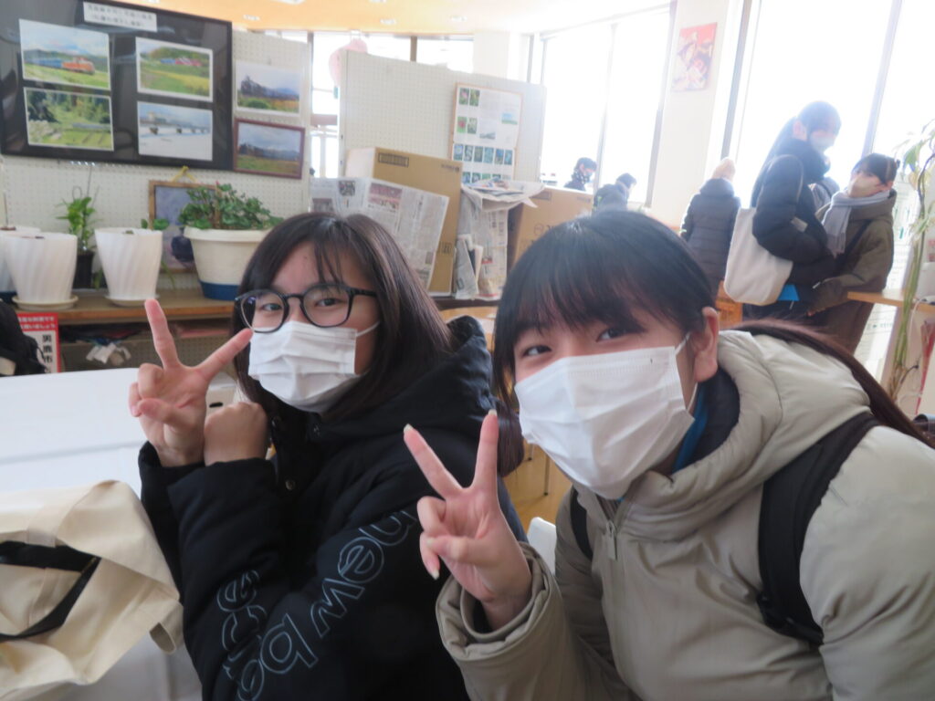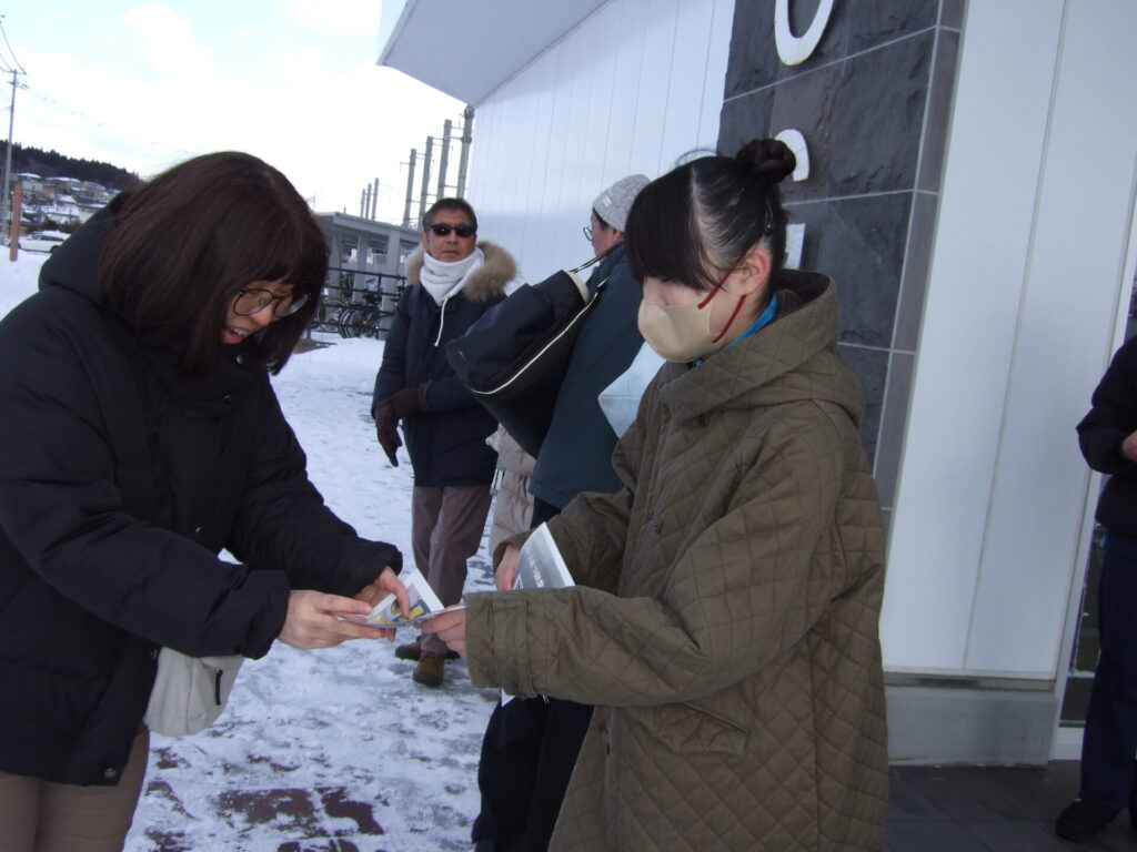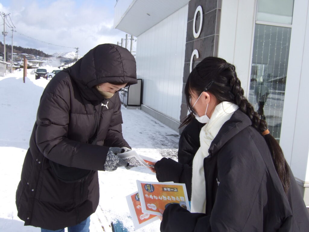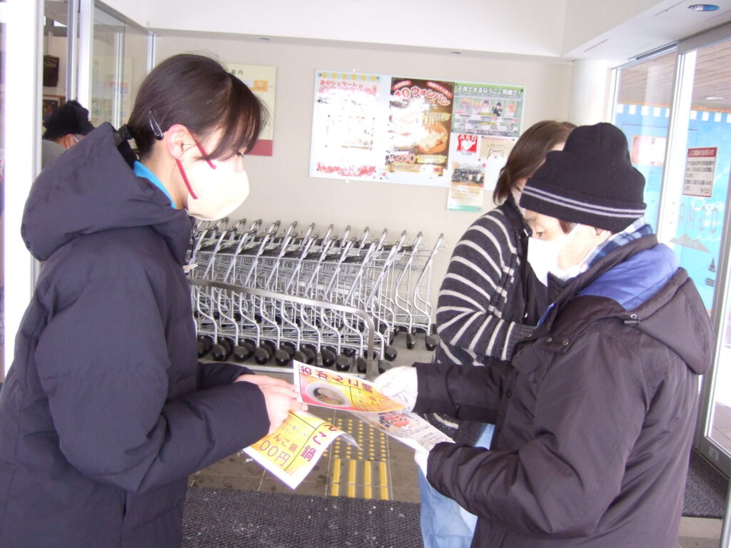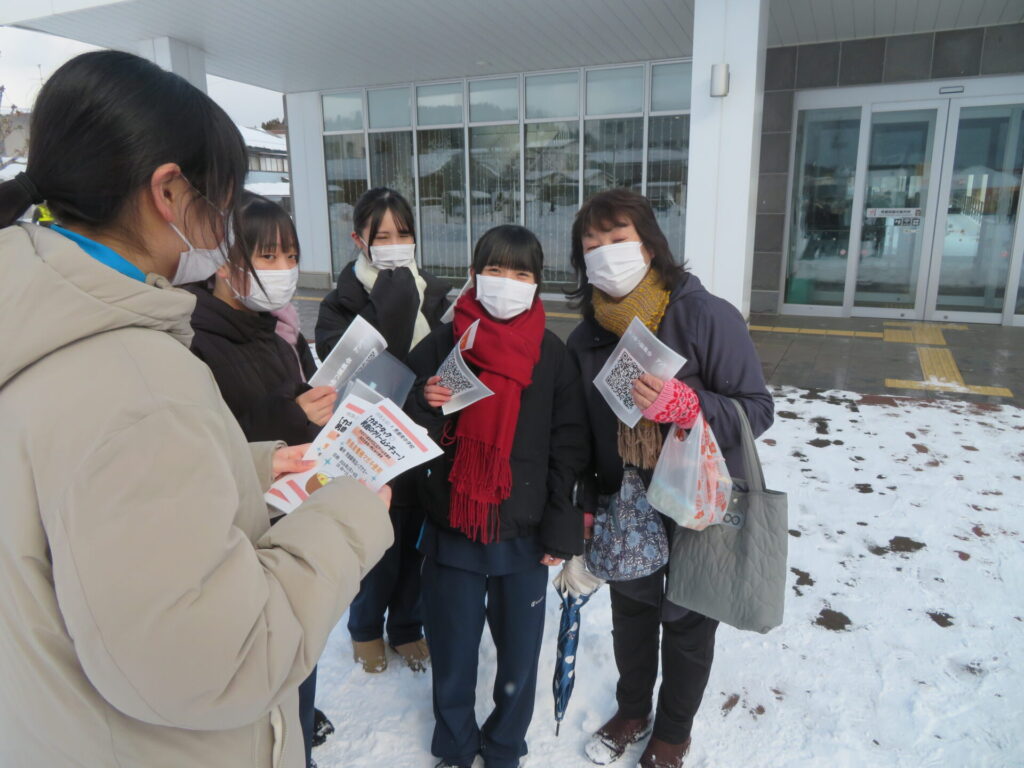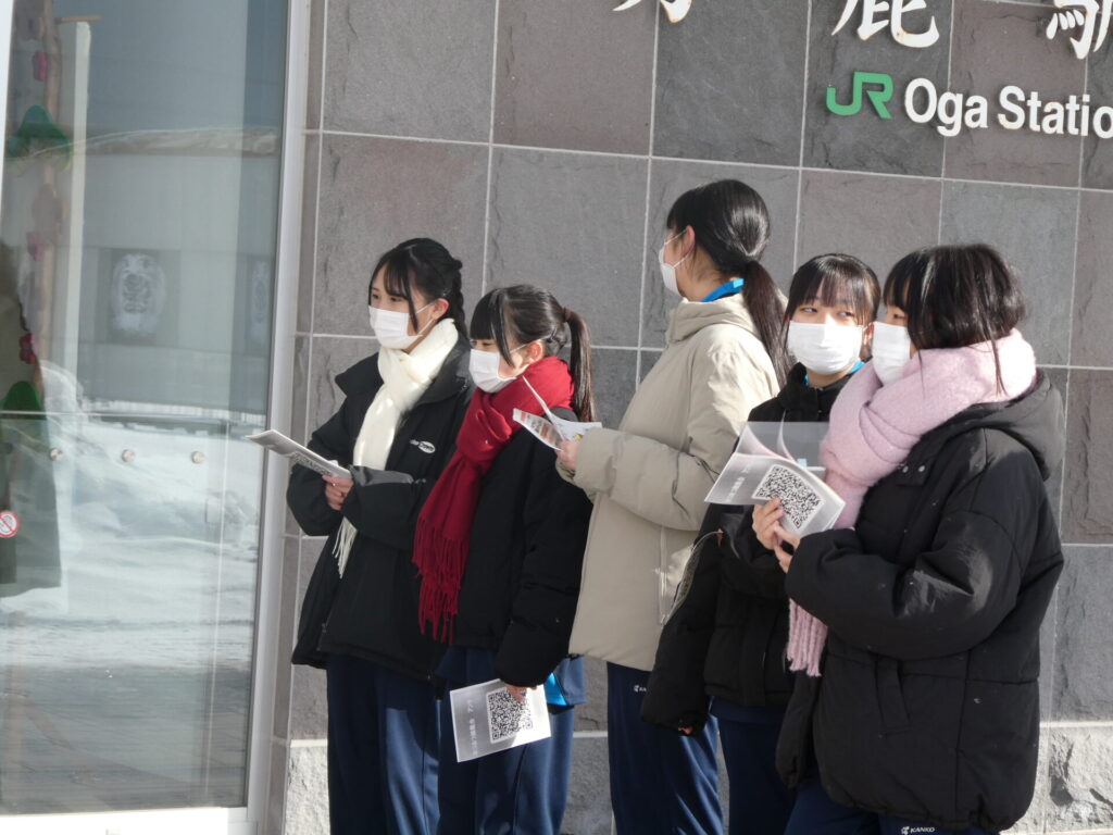 2月7日に1,2年生が男鹿駅前でイベントを行いました。