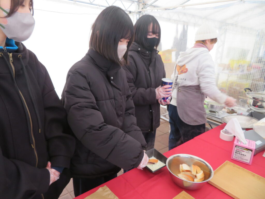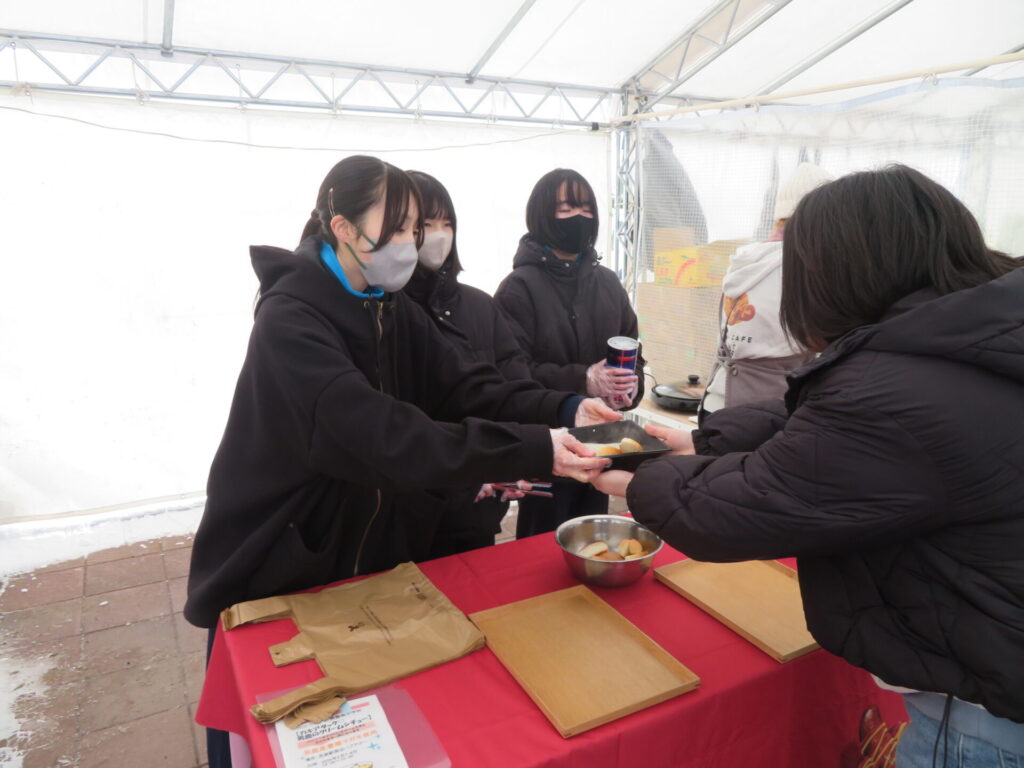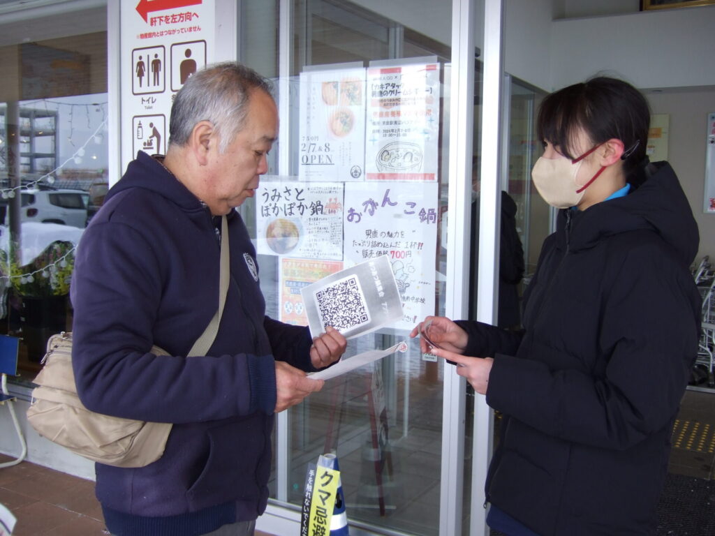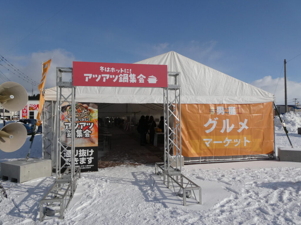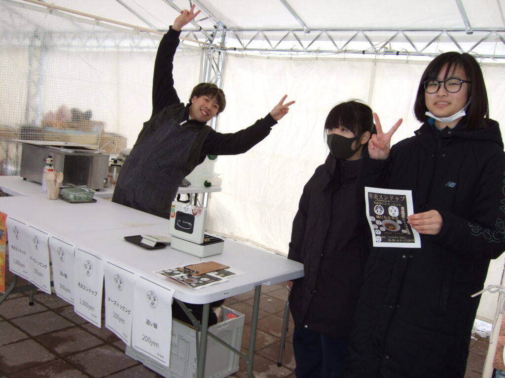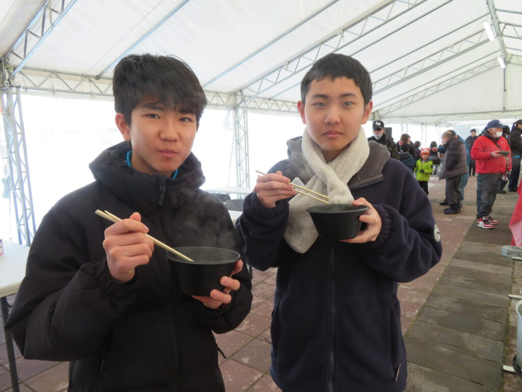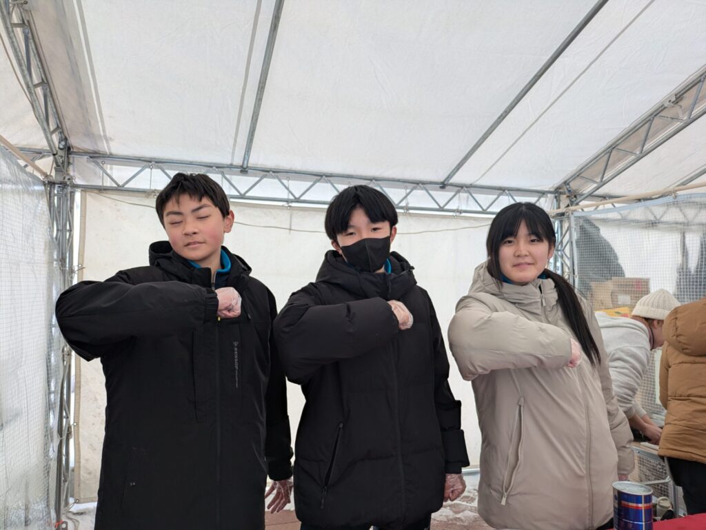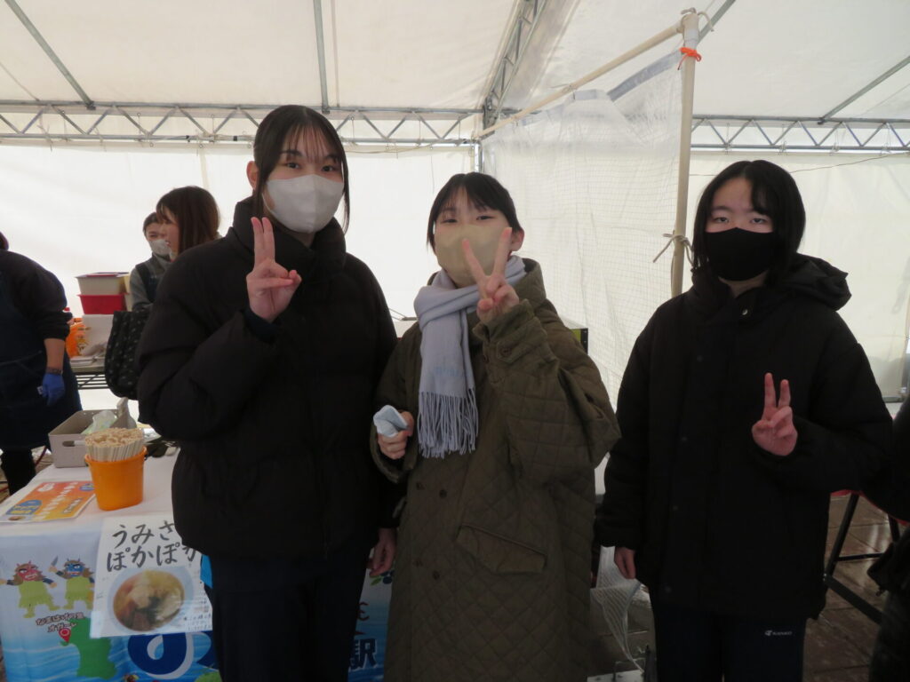 ここからは鍋集会での活動です。オガーレや男鹿駅での宣伝、テント内の飲食ブースでの接客を行いました。南中生は飲食券を作成していただき、自分たちも鍋を堪能しました。また、来場いただいた方々へのアンケート調査も行いました。