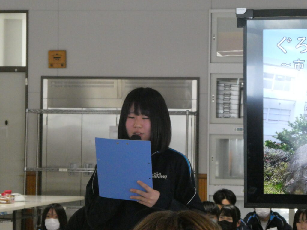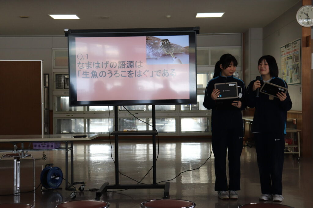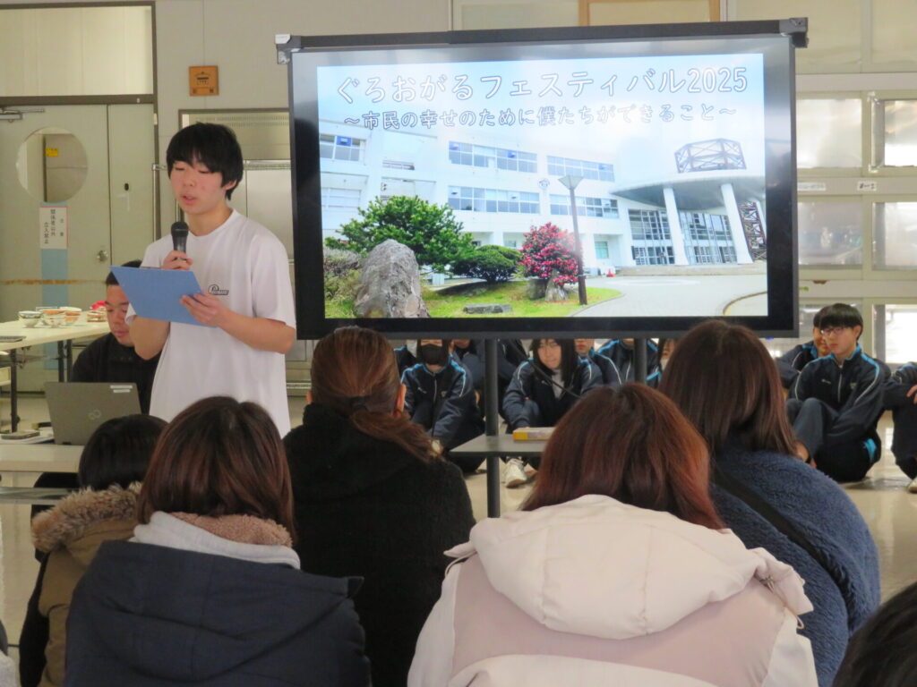 2月11日に、本校を会場に3年生主催の「ぐろおがるフェスティバル」が開催されました。3年生は『男鹿に住む皆さんが「幸せを感じることができるように、ご近所さんや家族などの「人とのつながり」を生むイベントを」を目指して企画をしてきました。主な内容は次の3つです。