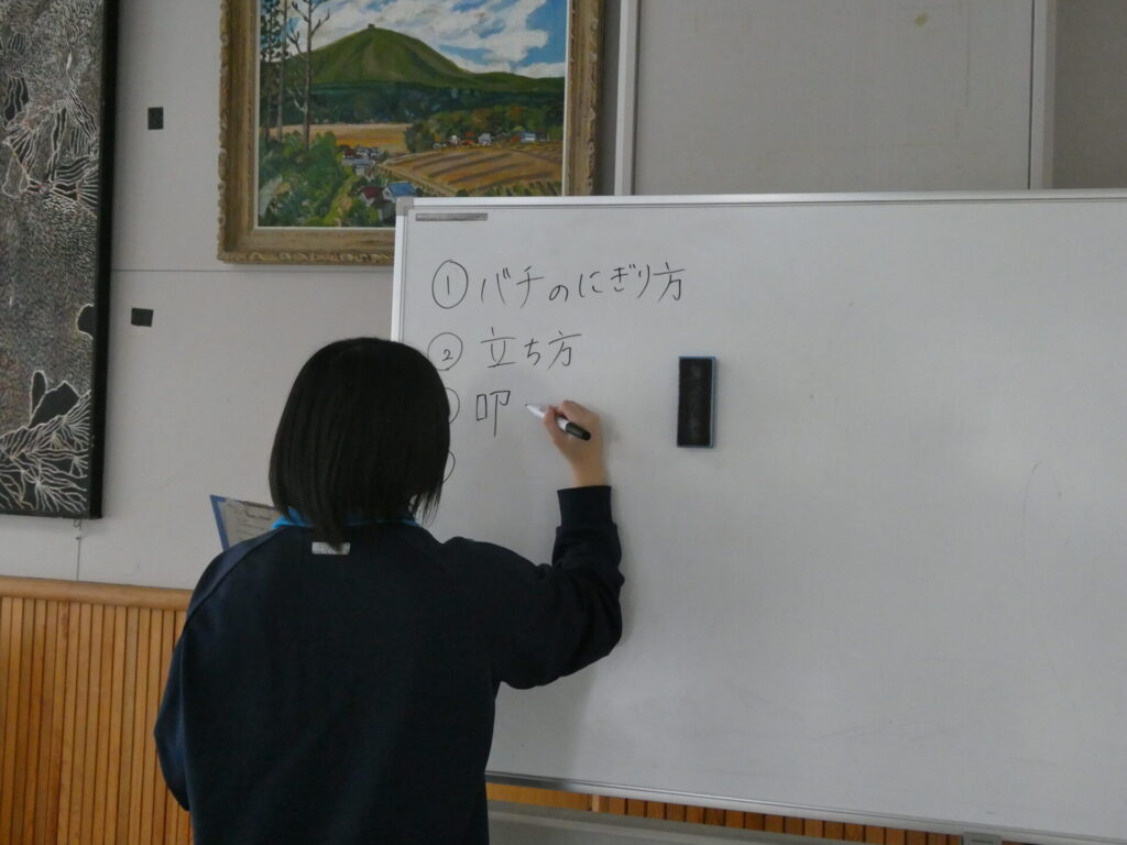 和太鼓を通じての交流のようすを紹介します。クイズでウォーミングアップの後に体験です。練習を重ねるごとにリズムが合い、拍手と笑顔が溢れる時間となりました。