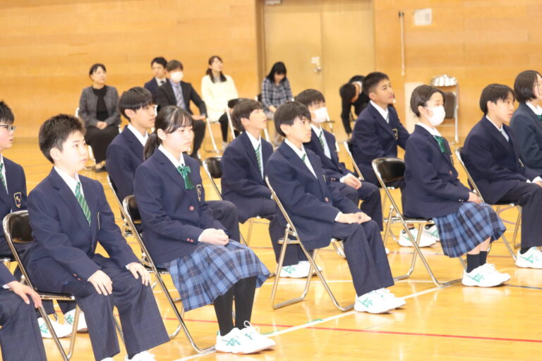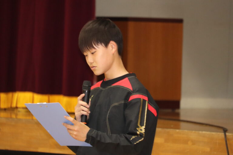 生徒会入会式では、生徒会事務局から、生徒会の仕組みや南中三大行事についての説明がありました。また、各委員会の委員長からは活動の内容やどんな人が向いているかの説明がありました。