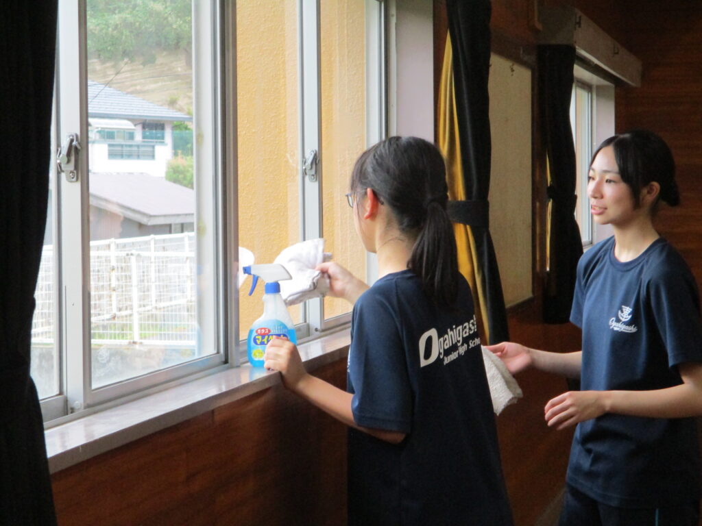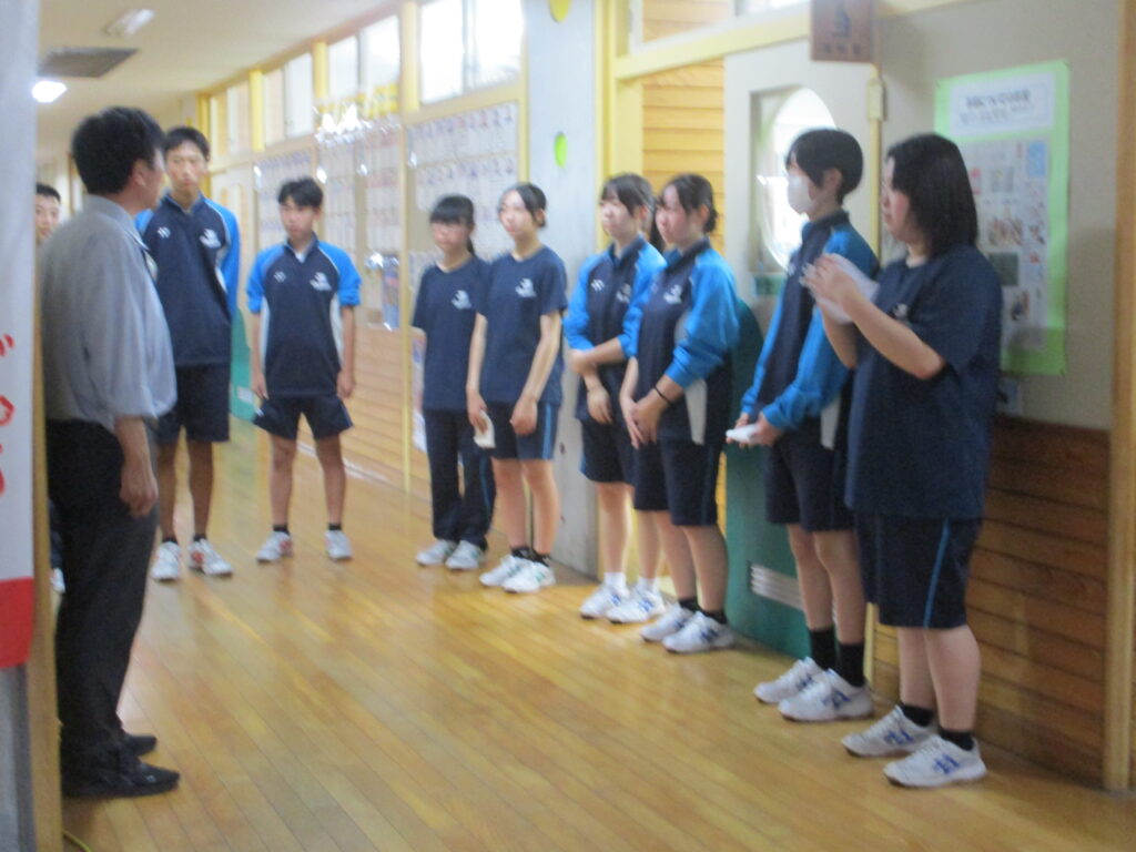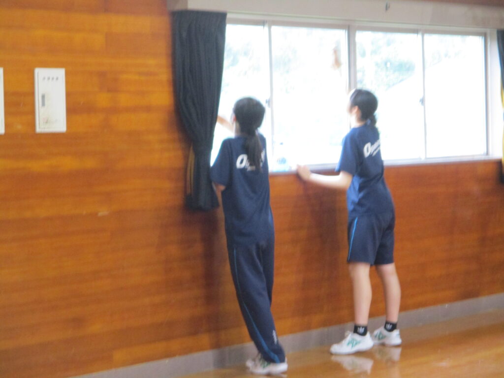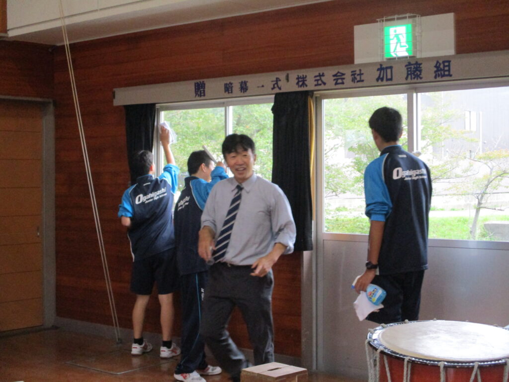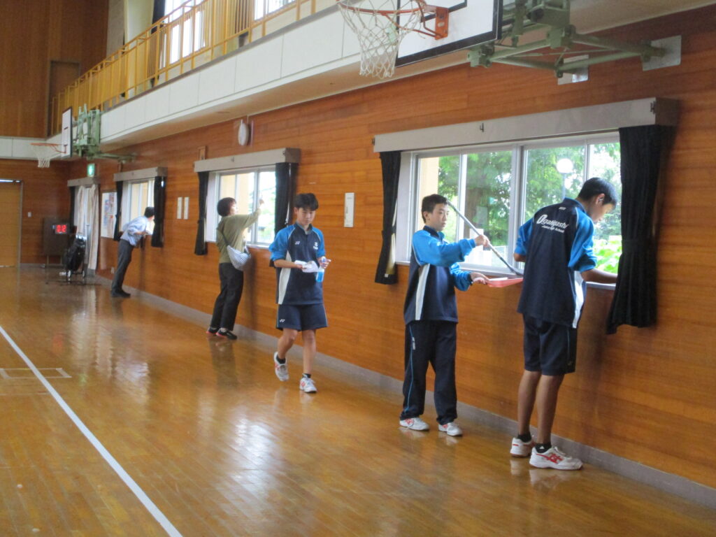 新聞にも活動の様子が掲載されましたが、東中生のみなさんが、学区の様々な場所で地域貢献活動をしてくれました。本校には9名の東中生の方が来てくれ、(卒業生の人もいて、「懐かしい~!」と言っていた人も)体育館の窓拭き、キャットウォークの掃除をしてくれました。普段なかなかできないでいた場所が、生徒さん達の力でピカピカになり、大変助かりました。特に窓の高い所、外側など、子ども達では手が届かない所に手が届き、さすがだなと思いました。ありがとうございました!!