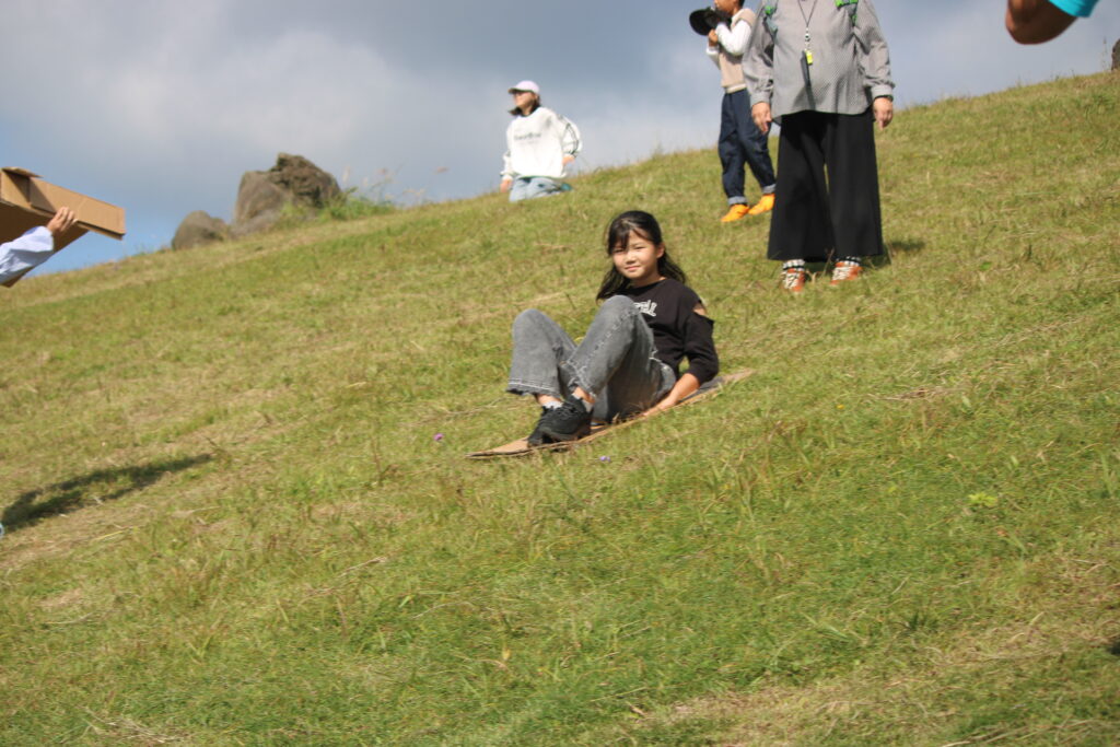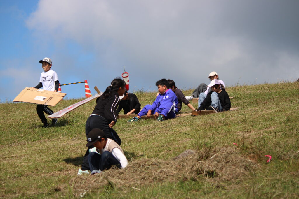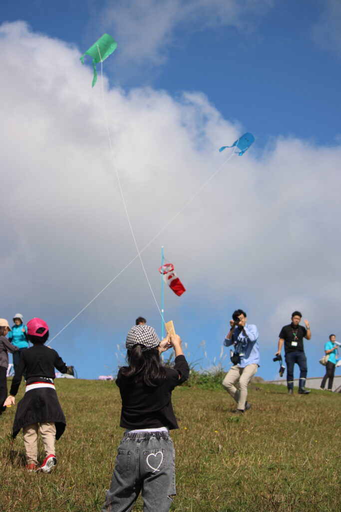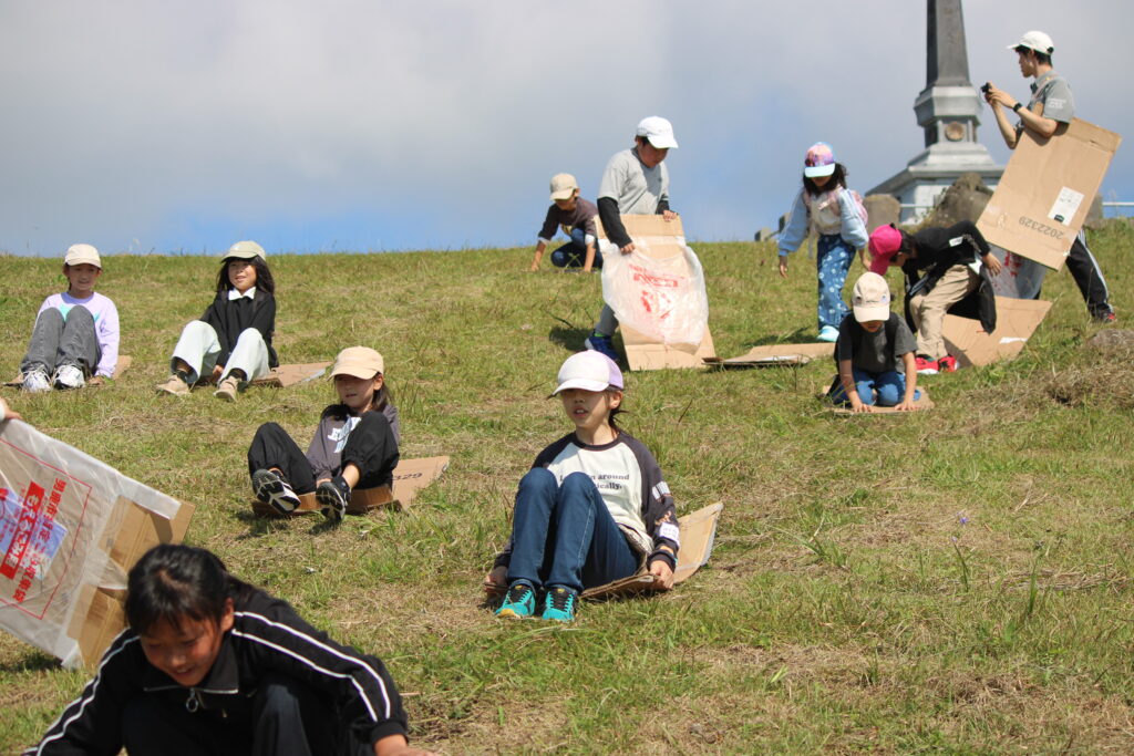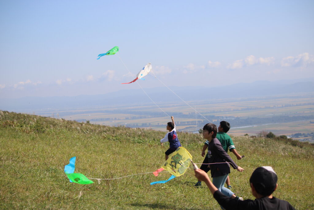 これまで市の観光課の方達と話し合いながら進めてきた「寒風山の遊びプロジェクト」。前日結構な量の雨が降ったので、地面が濡れていないか心配されましたが、爽やかに晴れ風もあったために、濡れたりすることなく遊びのプロジェクトを体験することができました。「寒風山でこんなに長い時間、楽しい遊びをしたのは初めて!」等の感想も聞かれ、その思いが市内外の方達に届くといいです。観光課の方達からのご協力、感謝いたします。