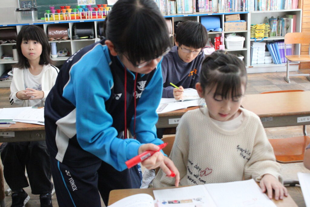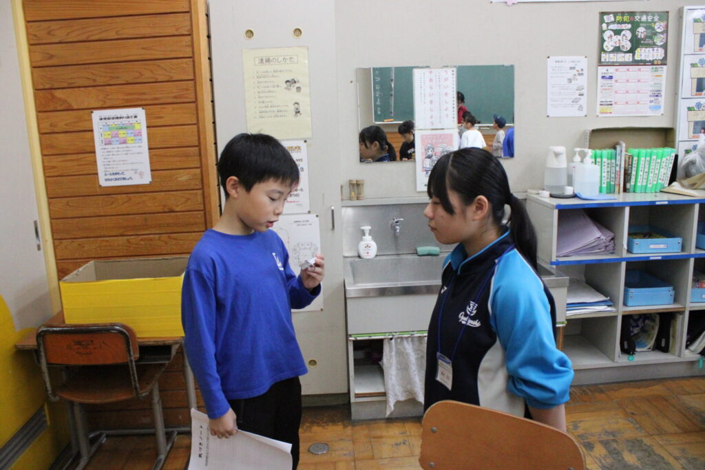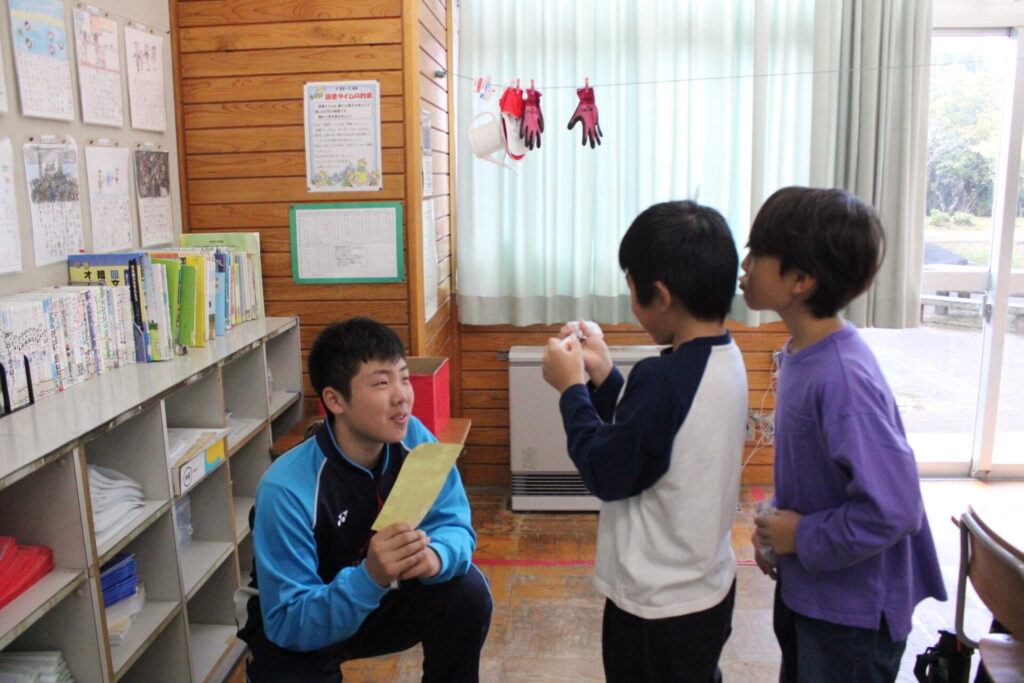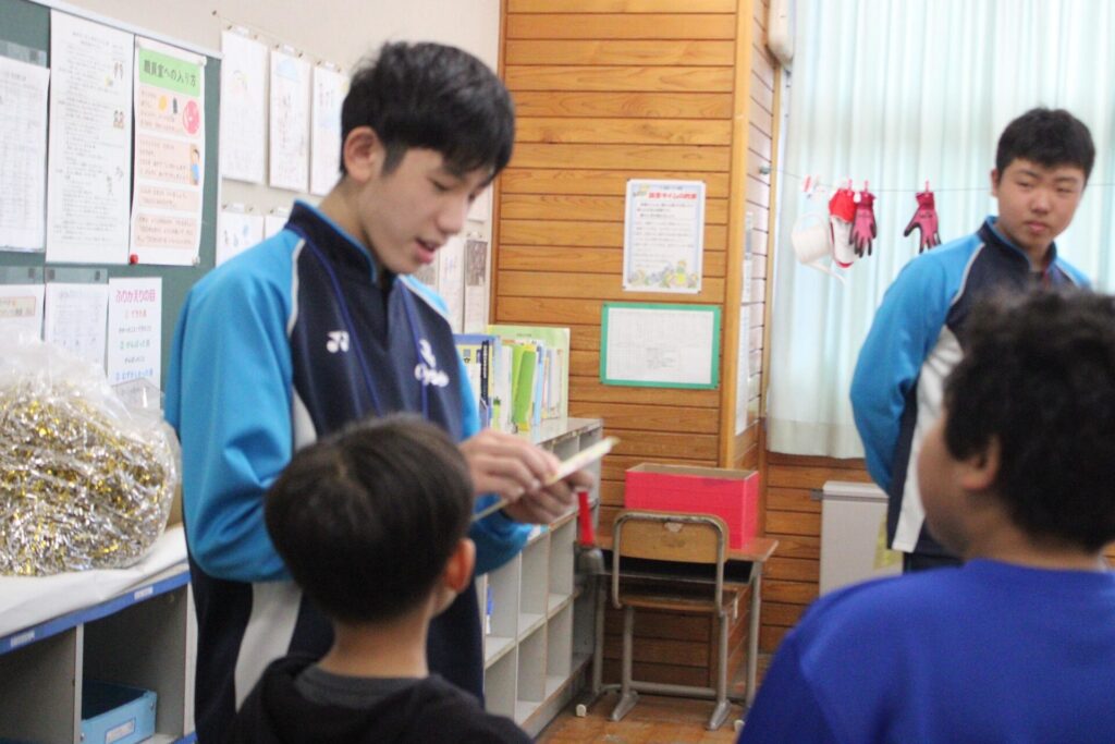男鹿東中学校の2・3年生が、職場体験として本校に6名の生徒さんがやってきました。今回来校した生徒さん達は開始・終了時刻等をきちんと守り、学習指導に入ったり、給食・清掃・環境整備等に自主的に参加しており、ミニ教育実習のようでした。休み時間には子どもたちと遊んでくれ、子どもたちにとってもうれしい時間となりました。