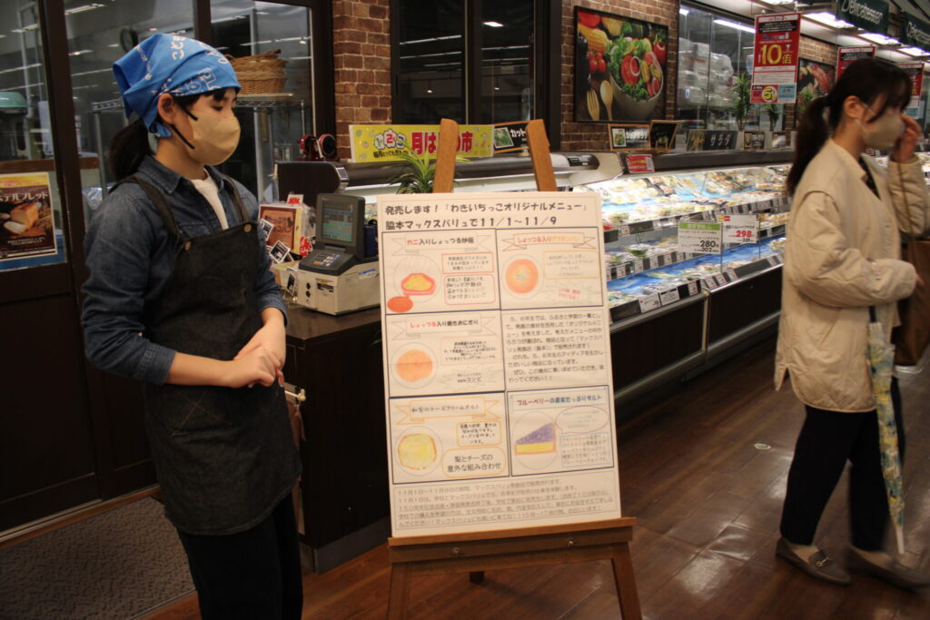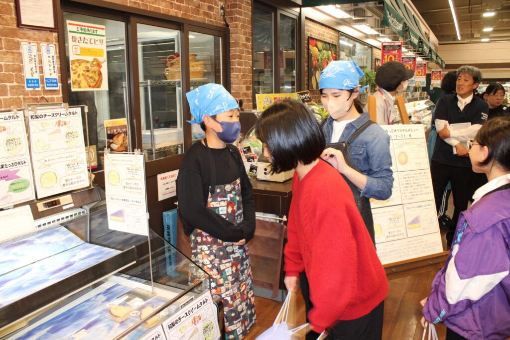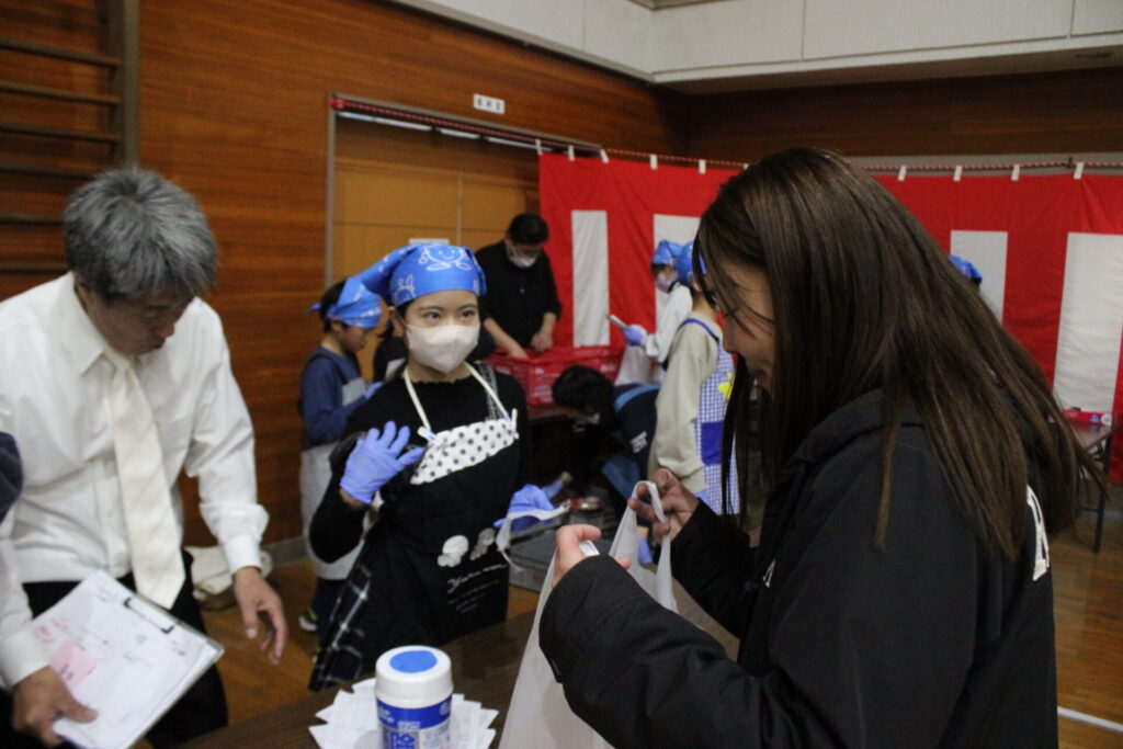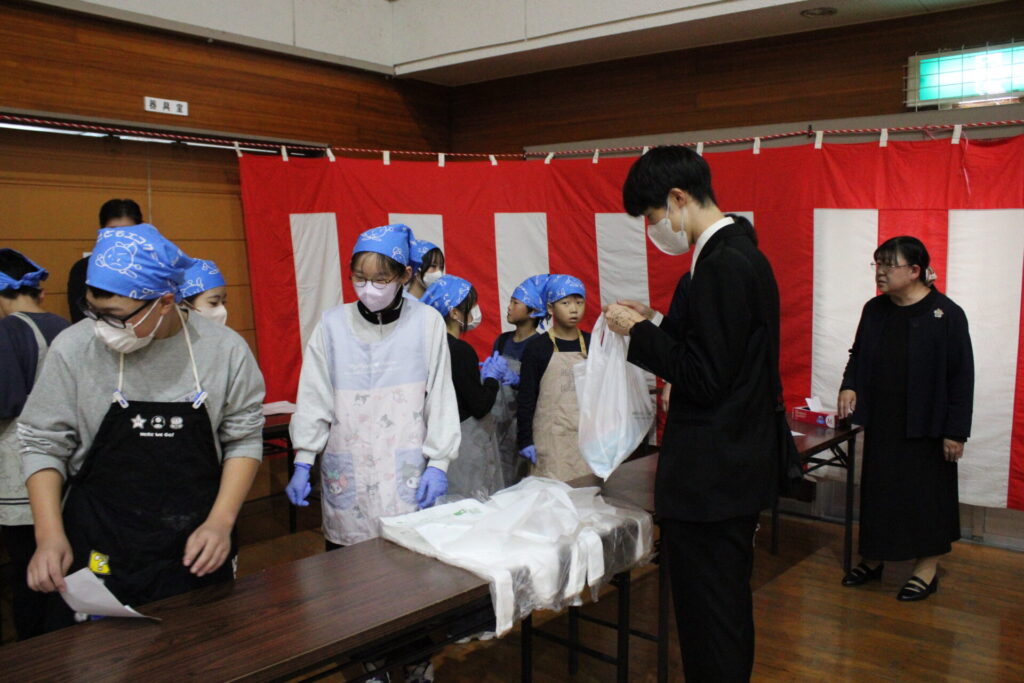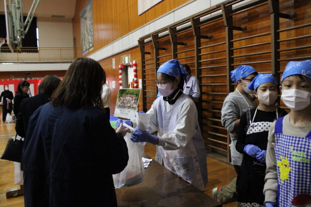 男鹿市子育て健康課からお話をいただき、イオン東北さんと共同で男鹿の特産物を生かした商品開発に取り組みました。実際に商品化され、脇本マックスバリュさんで販売体験もすることができました。(11月1日には、学習発表会後、学校でも販売しました。)購入された地域の方もたくさんいらっしゃったかと思いますが、子どもたちにとっては、実際の商品開発に挑戦し実現した貴重な体験となりました。和梨・ブルーベリーのタルト、カニチャーハン、しょっつるを使って味付けしたサケおにぎり…どれも最高においしかったです!