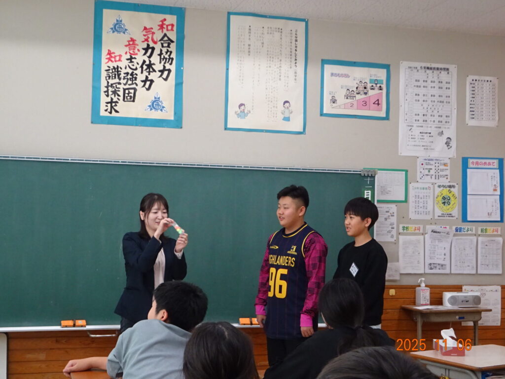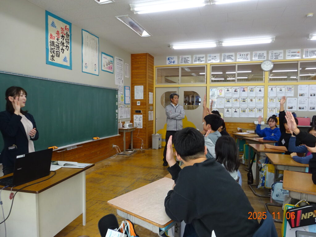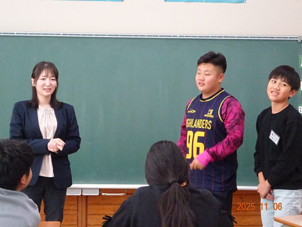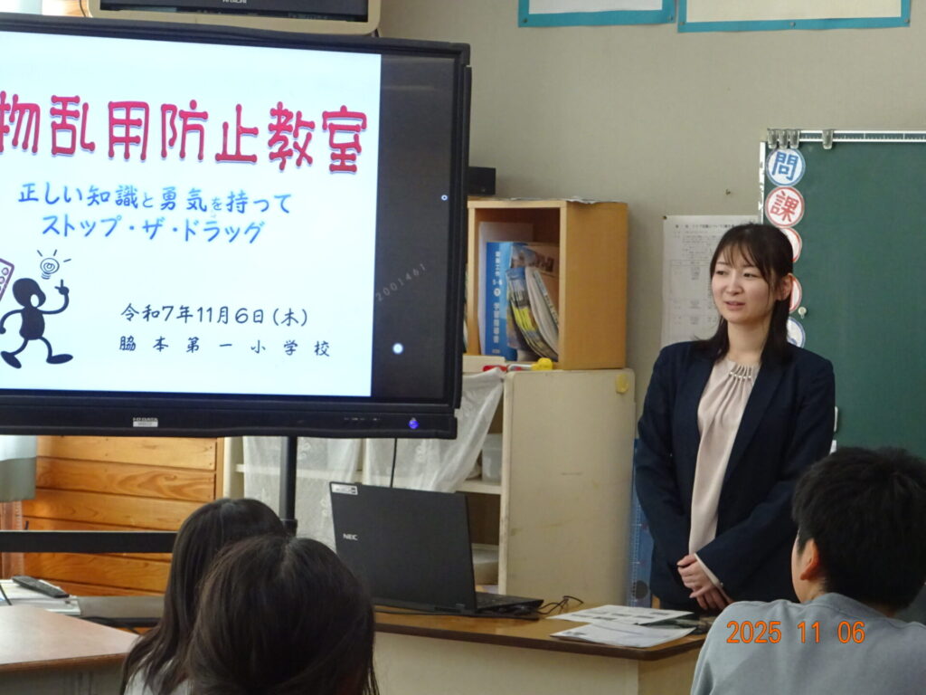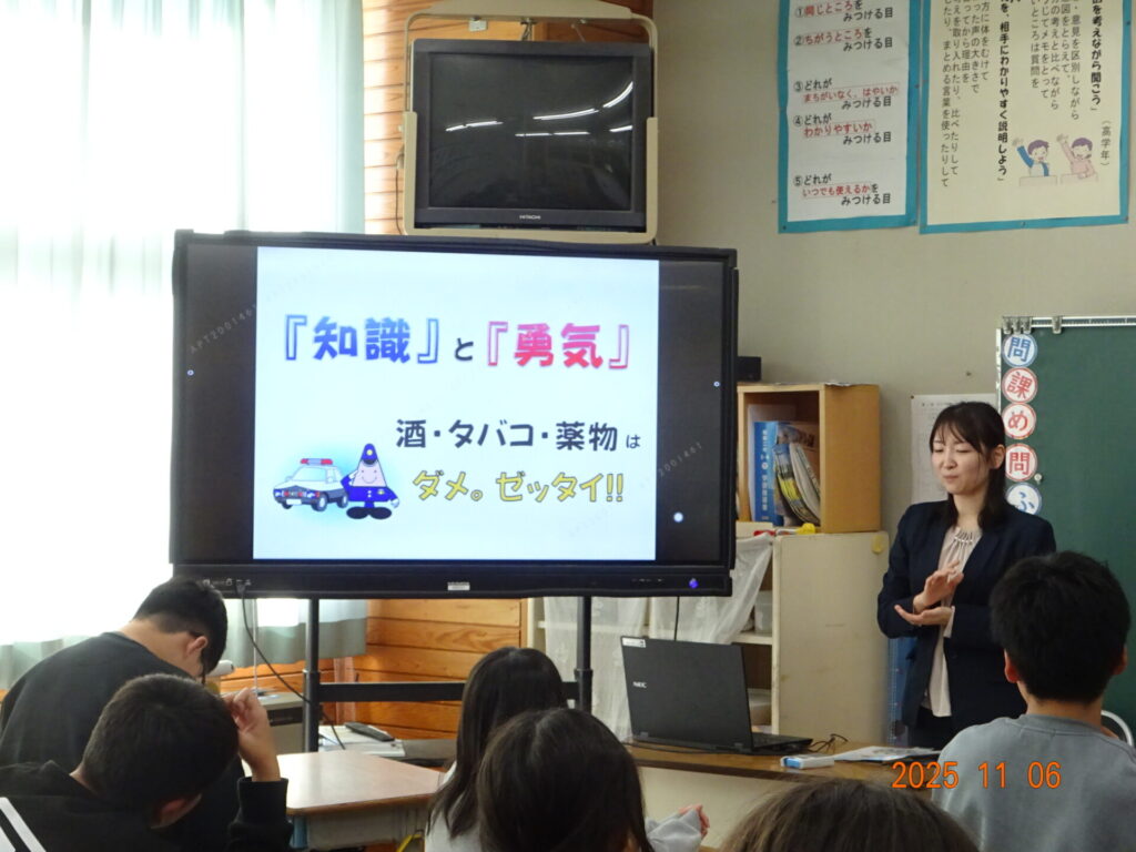 秋田県臨港警察署・少年サポートセンターの方を講師に、薬物乱用防止教室が行われました。薬物は意外と身近な所にあること、使用すれば心身やその後の人生に多大な影響を受けること、誘われてきっぱりと断る勇気をもつことを、ロールプレイングも交えて教えてくださいました。お酒やたばこも度が過ぎれば依存状態になってしまうことも一緒に学びました。