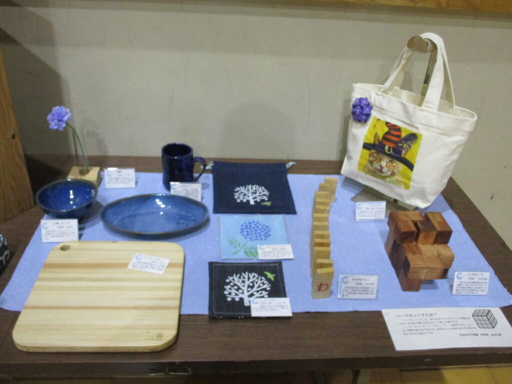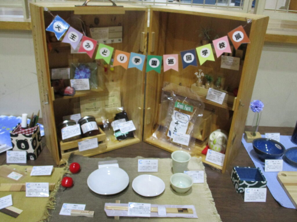 天王みどり学園さんの生徒さん達が作成した、素晴らしい作品が本校で展示されました。焼き物や木工、手芸作品等どれも丁寧に仕上げてあり、販売もしているそうです。実際に使ってみたくなる作品ばかり、作った人の思いが伝わってくるものばかりでした。