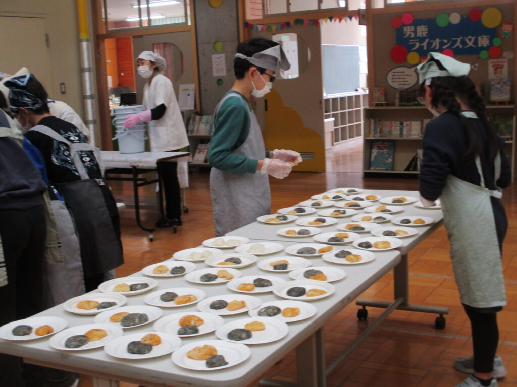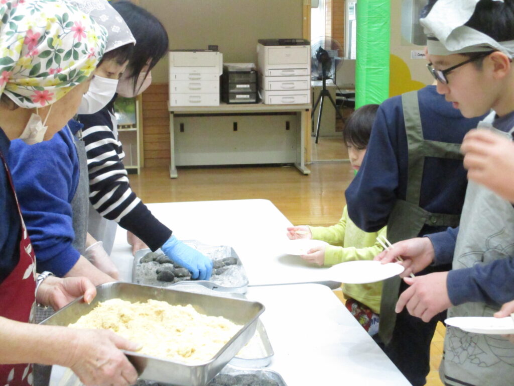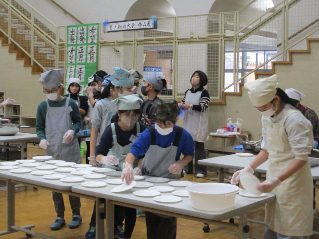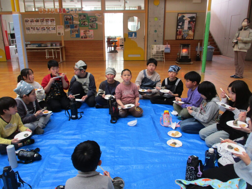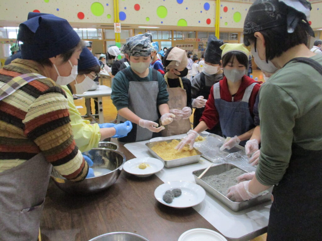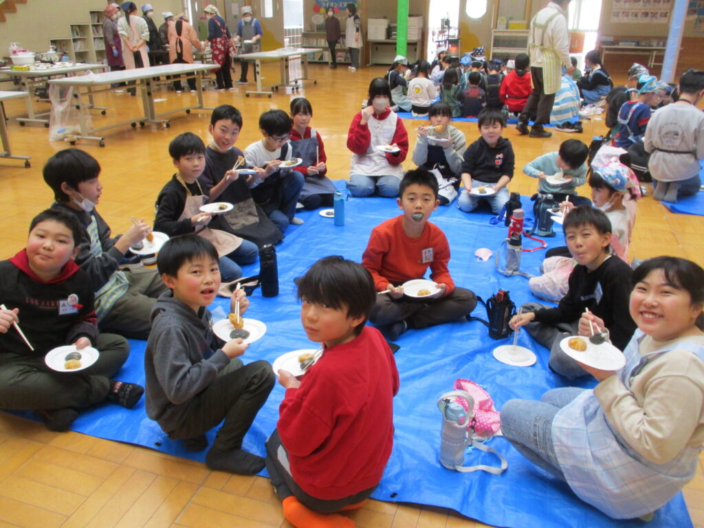 本日、全校でもちつき集会をしました。前日の準備から、当日のもちつき・片付けまで、脇本婦人会、おてら食堂、CS委員の方、保護者の皆様からたくさんお手伝いいただき、なかよし縦割り班毎においしいお餅をつき、食べることができました。臼と杵でつく体験はなかなかできないことで、子どもたちも張り切ってつき、きなことごまもちを何回もおかわりしていました。みんなで力を合わせてついたもちは格別においしかったようです。ご協力いただいた皆様、本当にありがとうございました。