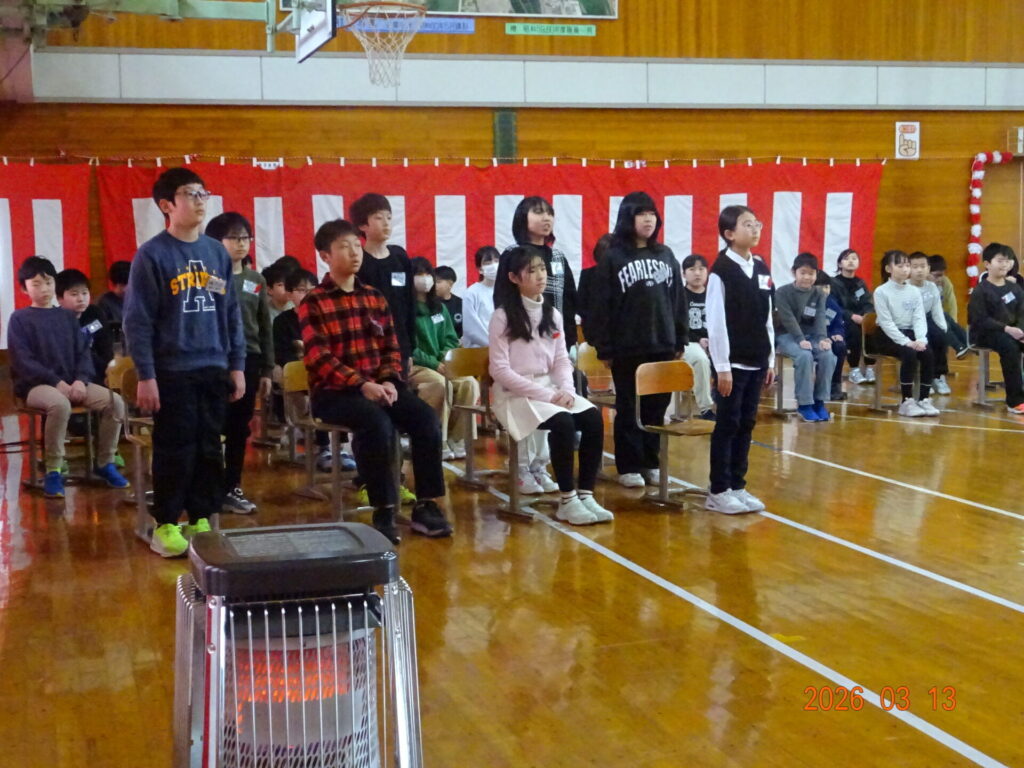 すっきりと晴れた本日、10:00から厳かに令和7年度卒業式が行われました。立派な態度で卒業証書を手にし、呼びかけでこれまでお世話になった方々への感謝の気持ちを表し、新たなステージへ旅立つ抱負を堂々と述べていました。お別れは寂しいけれど、脇本第一小学校は、卒業生をいつまでも応援しています。